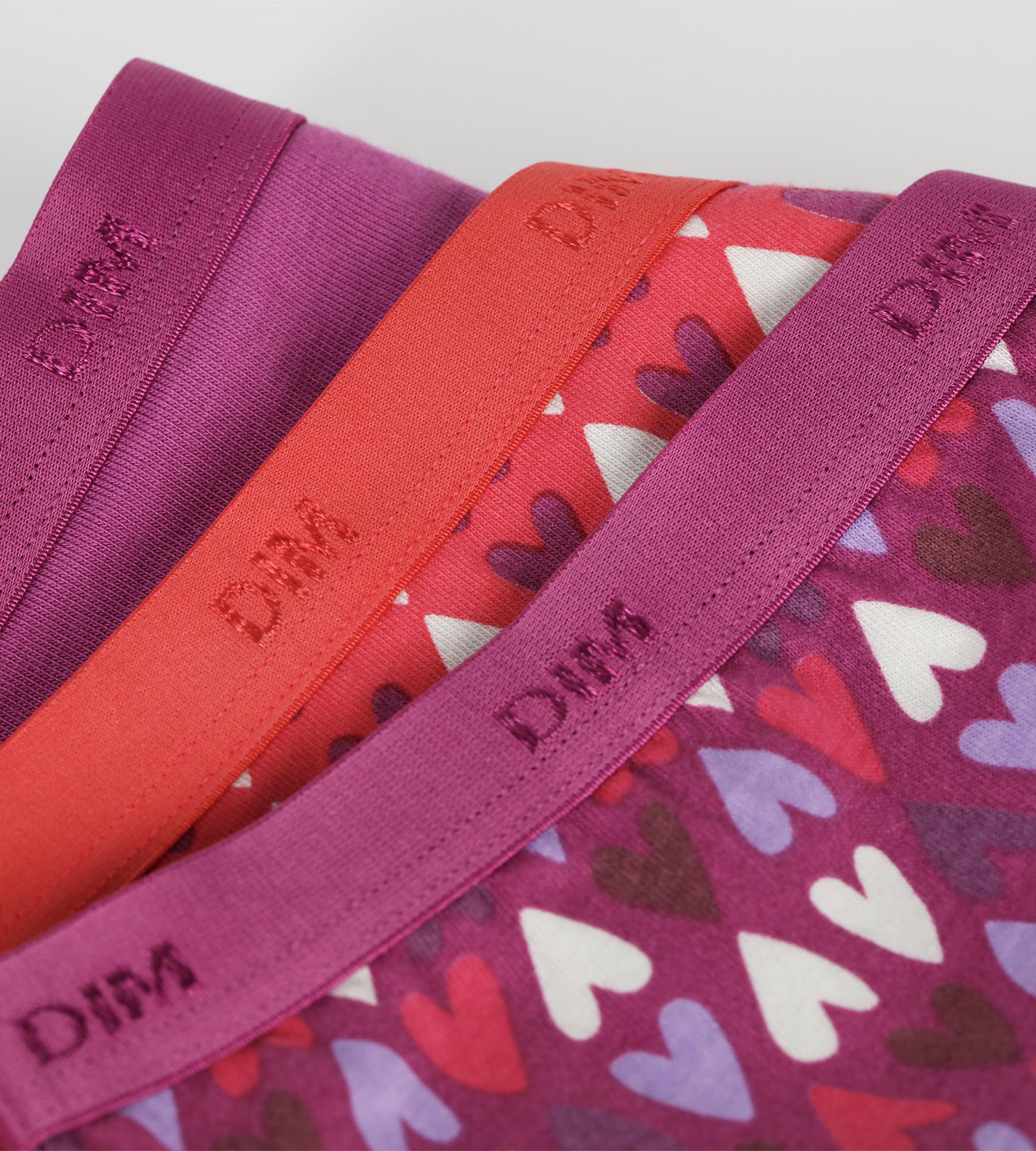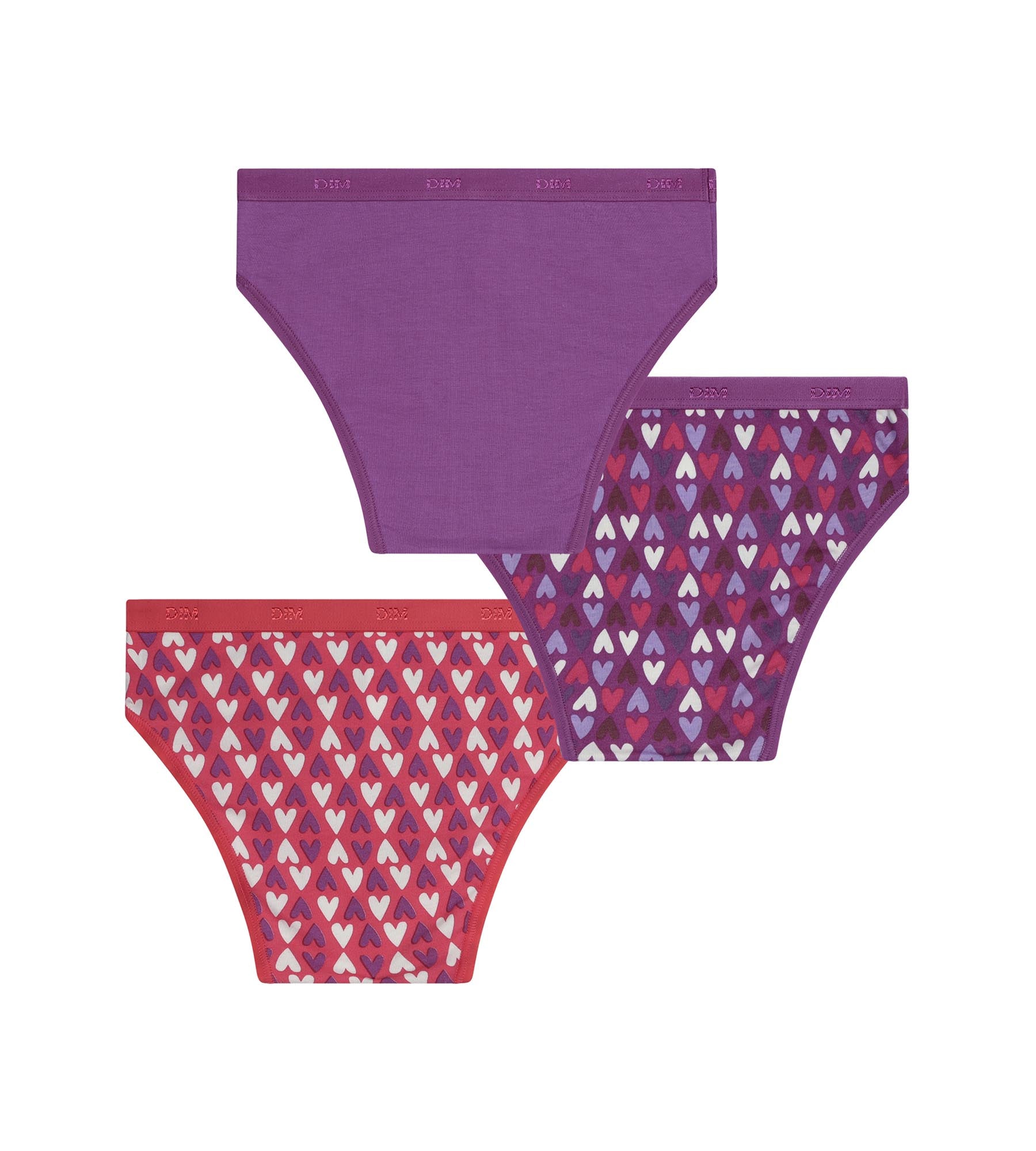 Pack de 3 braguitas de algodón elástico para niña Violeta Rojo con corazones Les Pockets