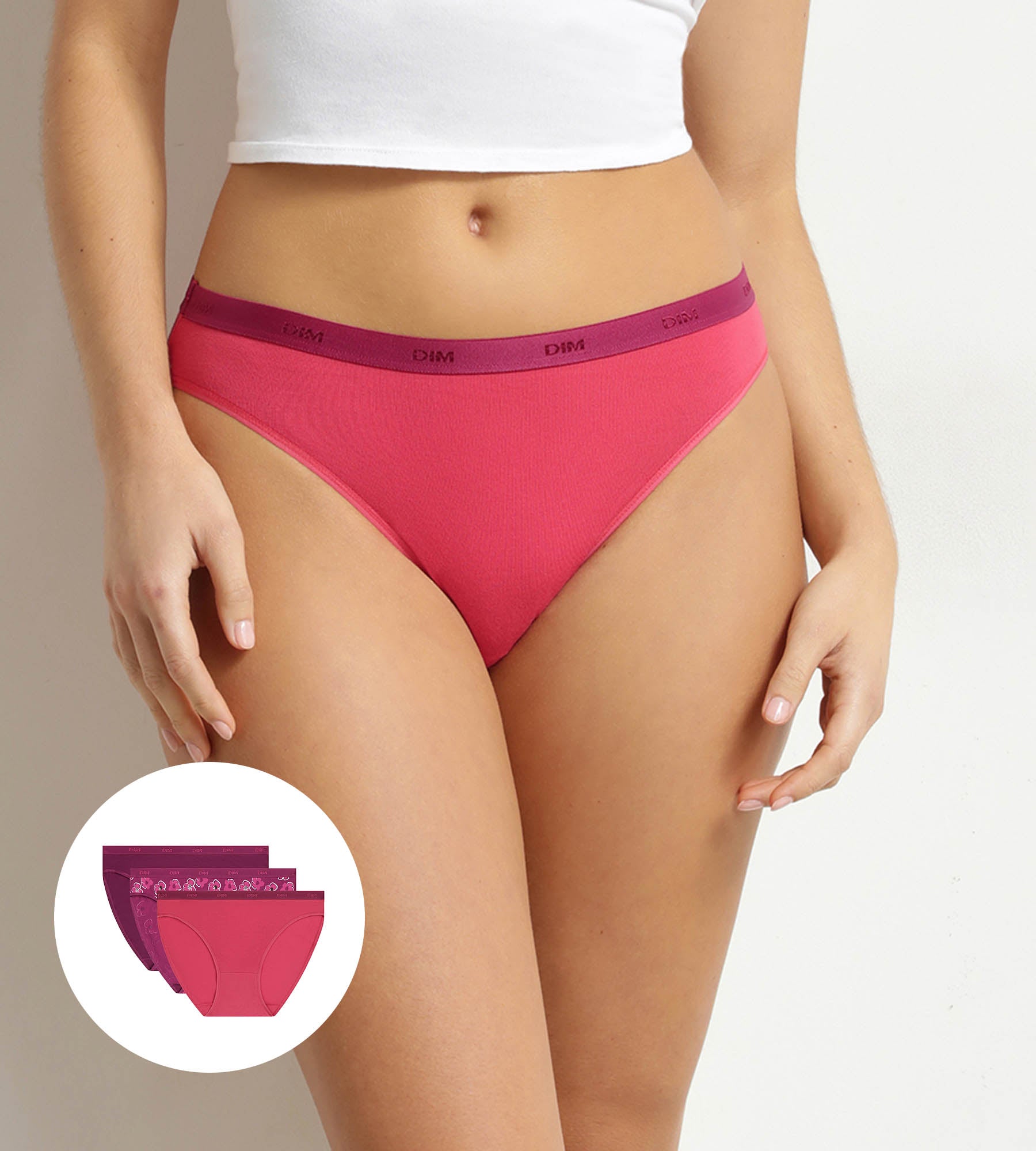 Apuesta por básicos con carácter con este pack de braguitas para mujer Fleurs Rubis Les Pockets, confeccionadas en una vibrante paleta de rosas, rubíes y motivos bucólicos. El tejido de algodón elástico aporta una flexibilidad natural que se adapta suavemente al cuerpo durante todo el día. La línea de braguitas para mujer Les Pockets apuesta por un estilo minimalista, realzado por una cintura sutilmente satinada, para un resultado sobriamente femenino. Un pack que encuentra fácilmente su lugar en un cajón de básicos, al tiempo que aporta un toque más luminoso.