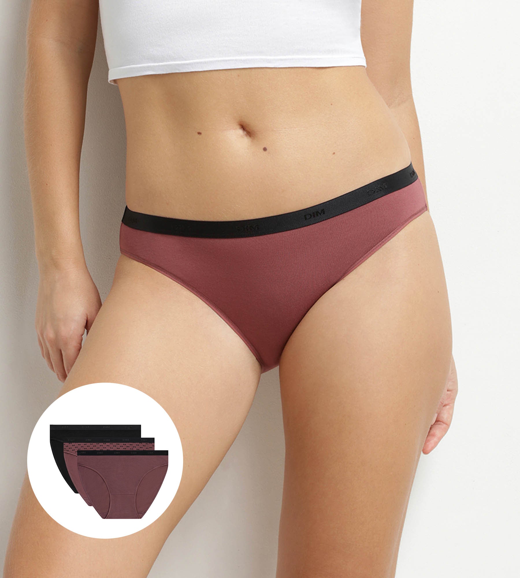Añade un toque de color a tus básicos con el pack de 3 braguitas de mujer Les Pockets de algodón elástico Negro Ciruela.