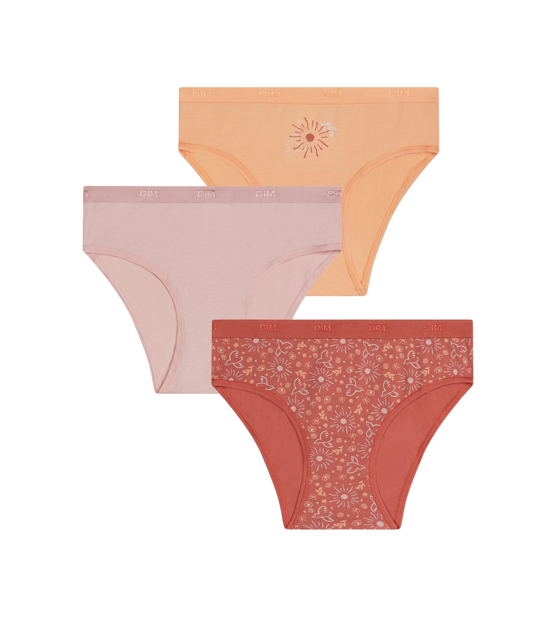 Pack de 3 braguitas para niña de algodón elástico con estampado de sol Les Pockets