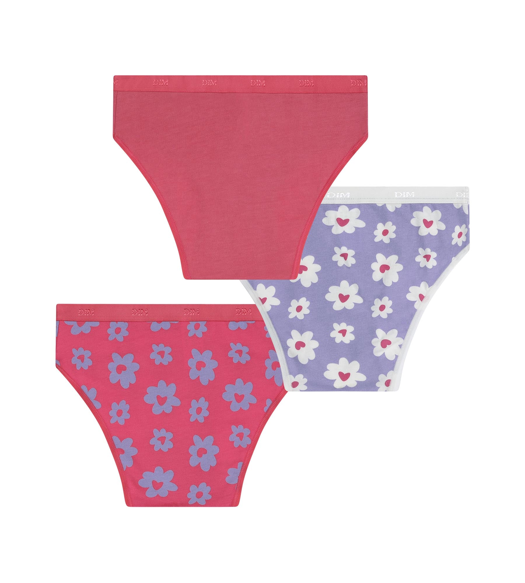 Aporta un toque pop a su día a día con el pack de 3 braguitas para niñas Les Pockets de algodón elástico rosa y violeta con motivos florales.