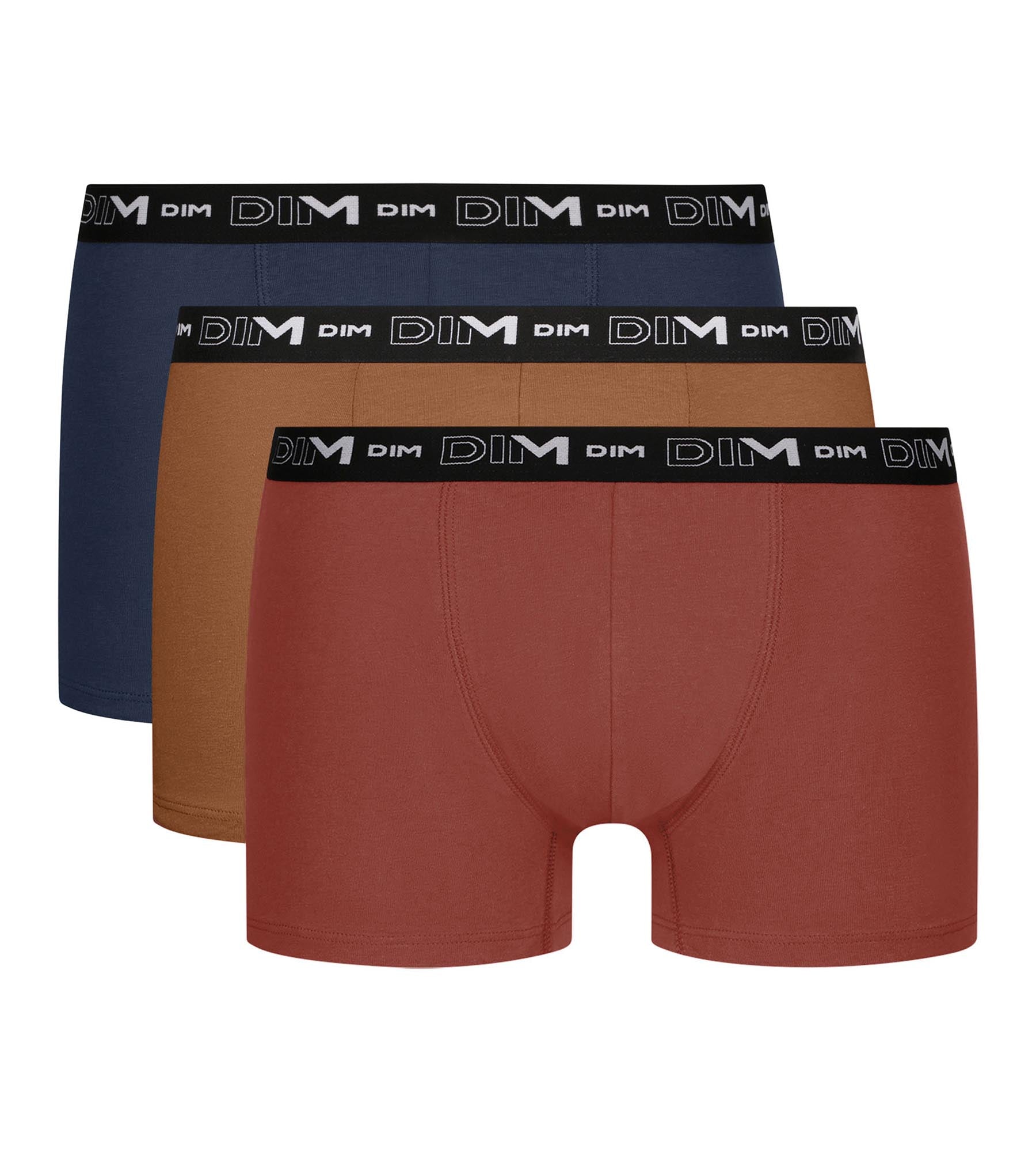 Añade un toque de color a tu ropa interior con este pack de 3 bóxers de hombre Dim Cotton Stretch en colores Coral, Ocre y Nocturne.