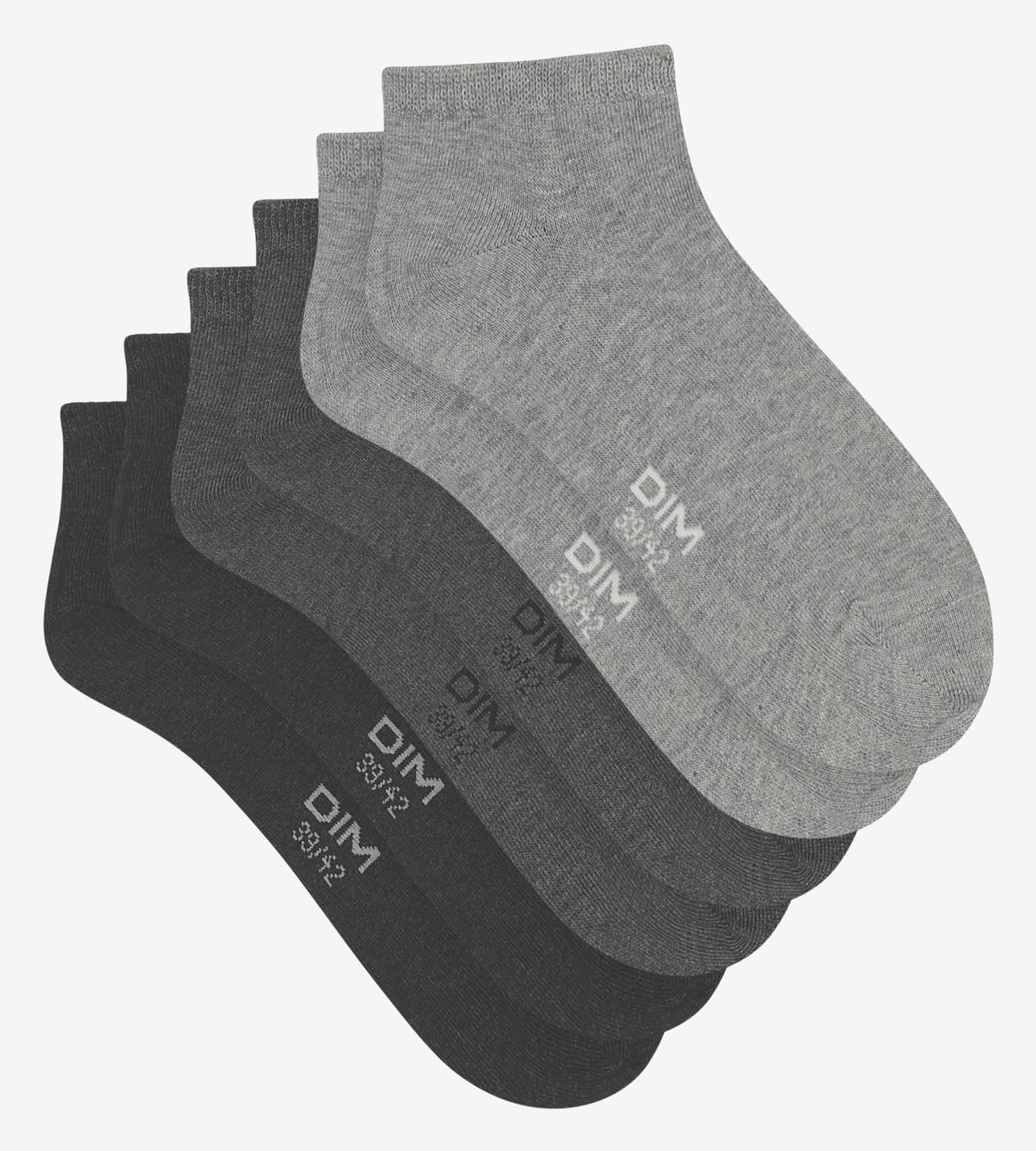 En concreto, este pack de 3 pares de calcetines para hombre cortos negros y grises de Dim Coton te vendrá genial para combinar con distintos tipos de zapatillas o zapatos.