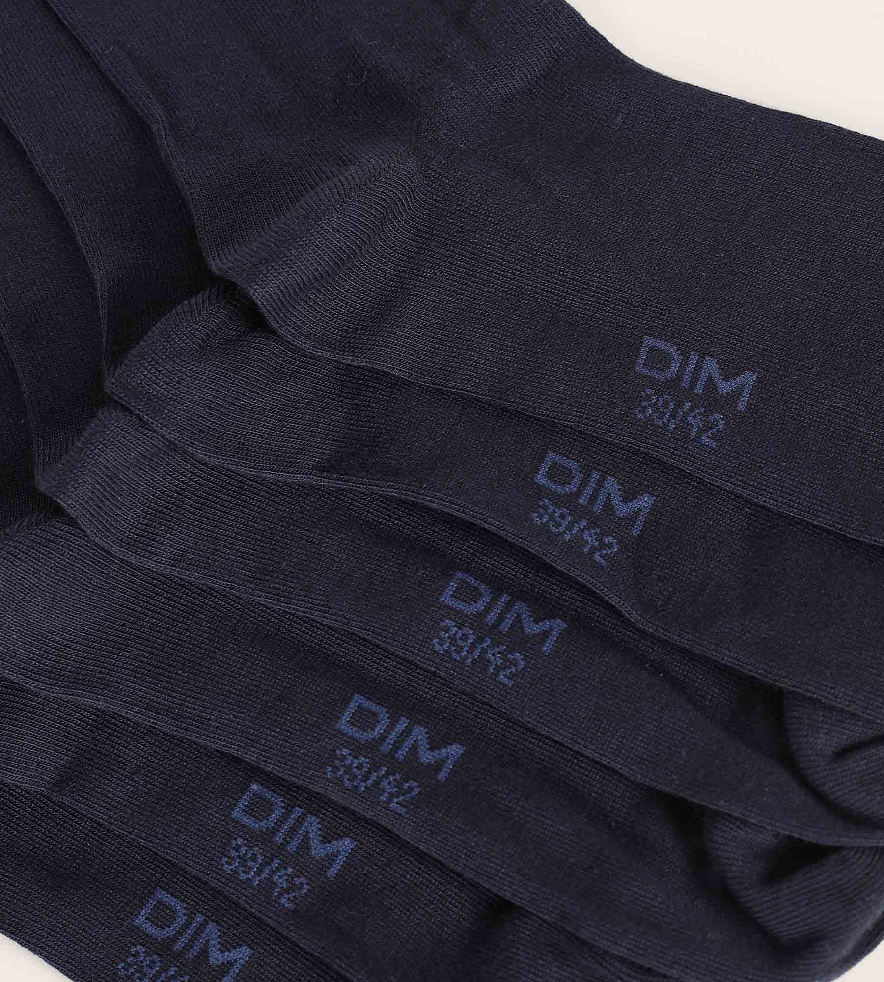 Remata tus outfits con sobriedad y elegancia con el pack de 3 pares de calcetines para hombre azul marino Dim Coton Confort