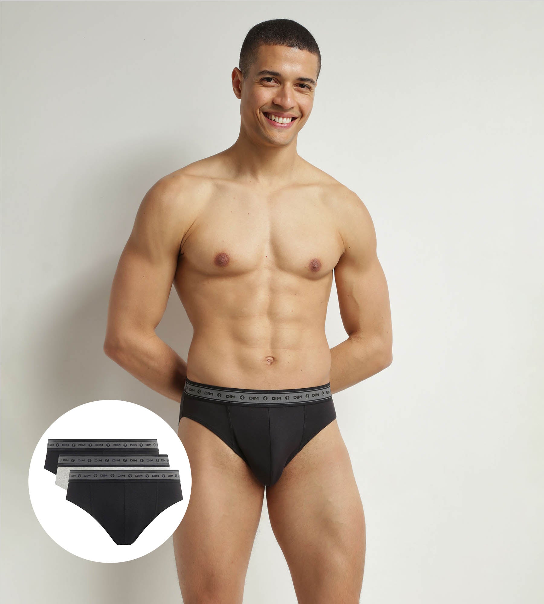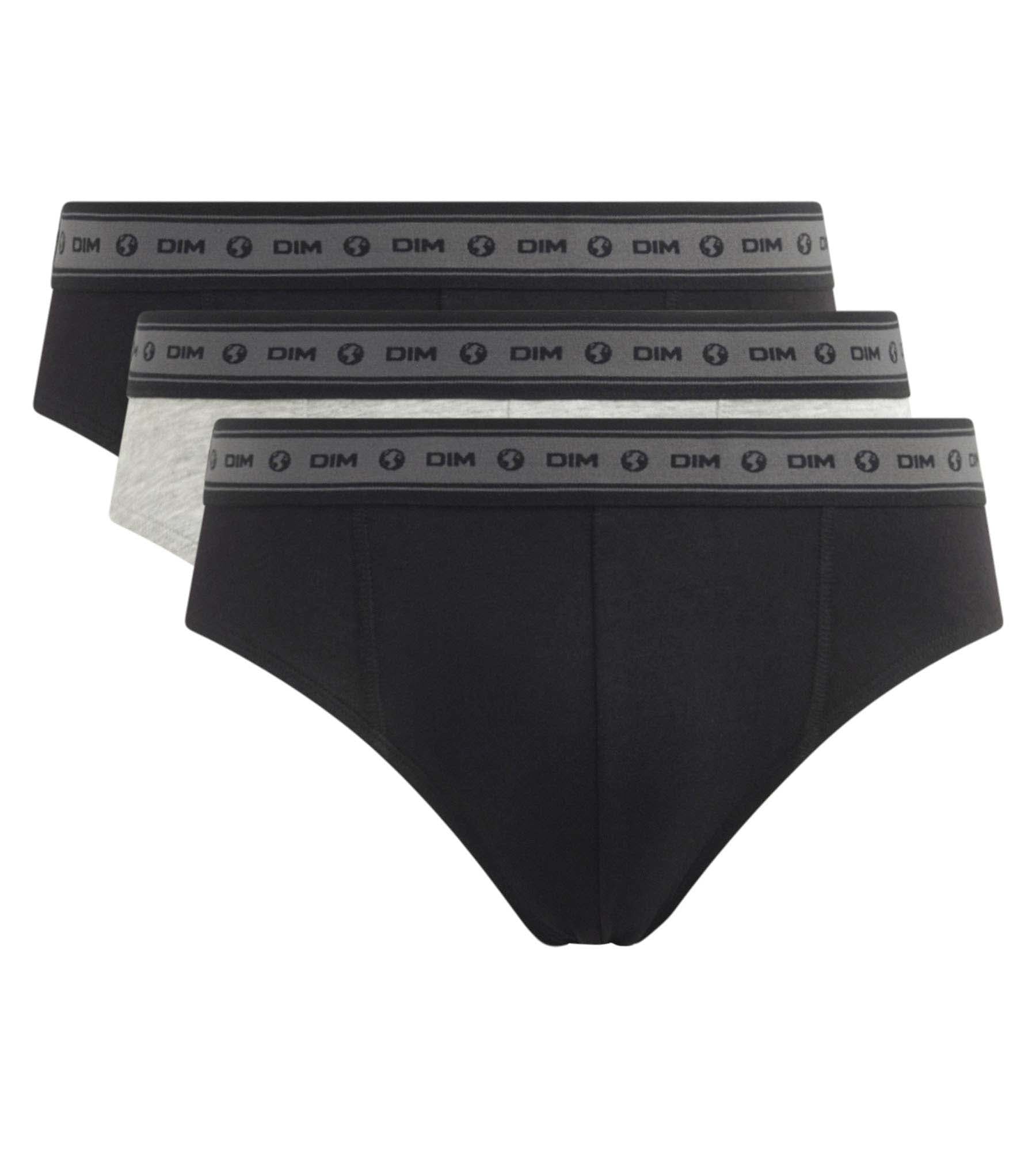 Tienes dos slips negros y uno gris perla con cinturilla elástica en contraste con el logo de Dim. Añade a tu compra las versiones en otros tonos o en formato bóxer para mayor calidez en los meses más fríos.