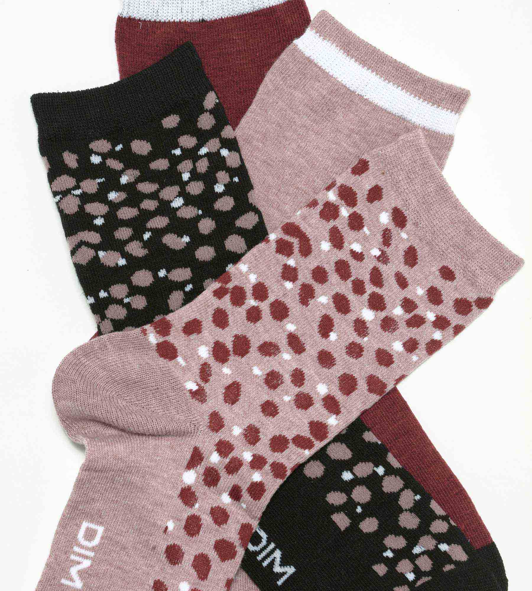 Pack de 4 pares de calcetines de mujer en Negro y Granate lisos y estampados Ecodim Style