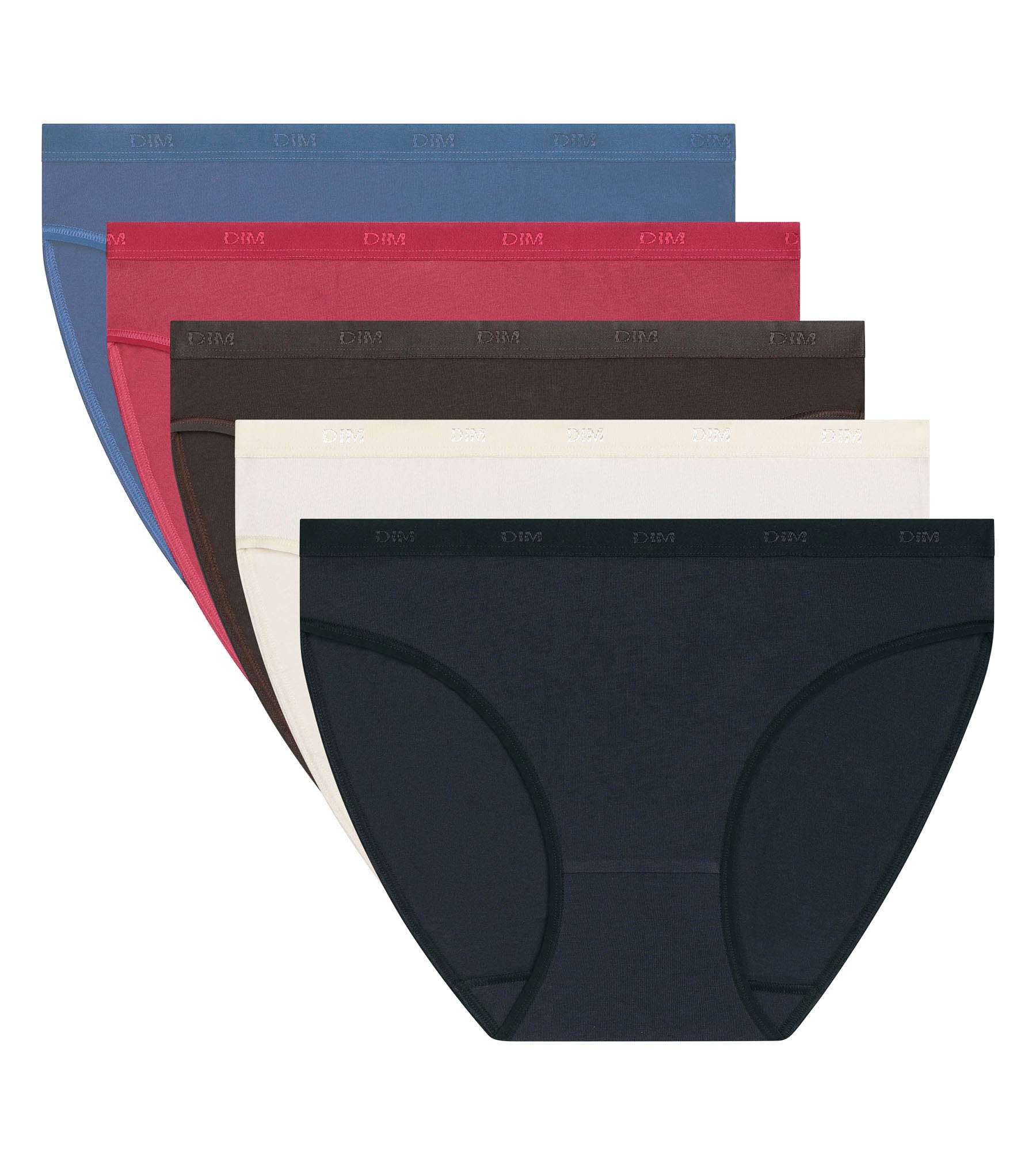 Renueva tu cajón de la ropa interior con este pack de 5 braguitas de mujer Les Pockets Ecodim de algodón elástico, en tonos intensos inspirados en la Tierra del Fuego.
