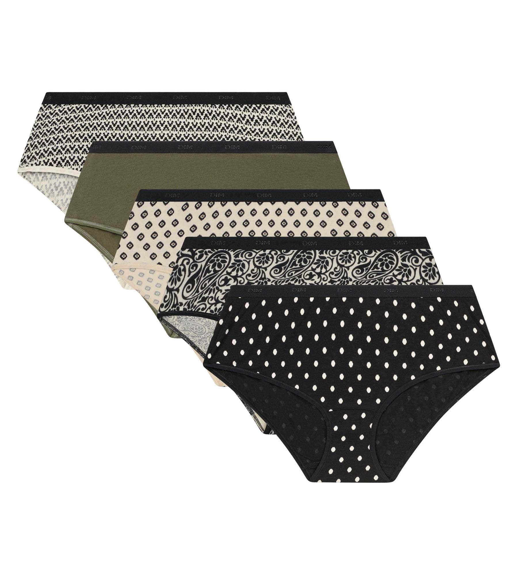 Pack de 5 calzoncillos negros con estampado étnico caqui para mujer Les Pockets