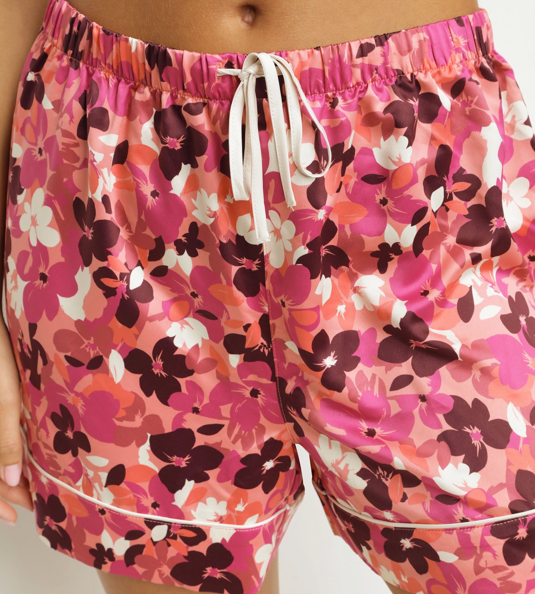 Mantente elegante incluso por la noche con el pantalón corto de satén floral de higo Dim Don't Disturb.
