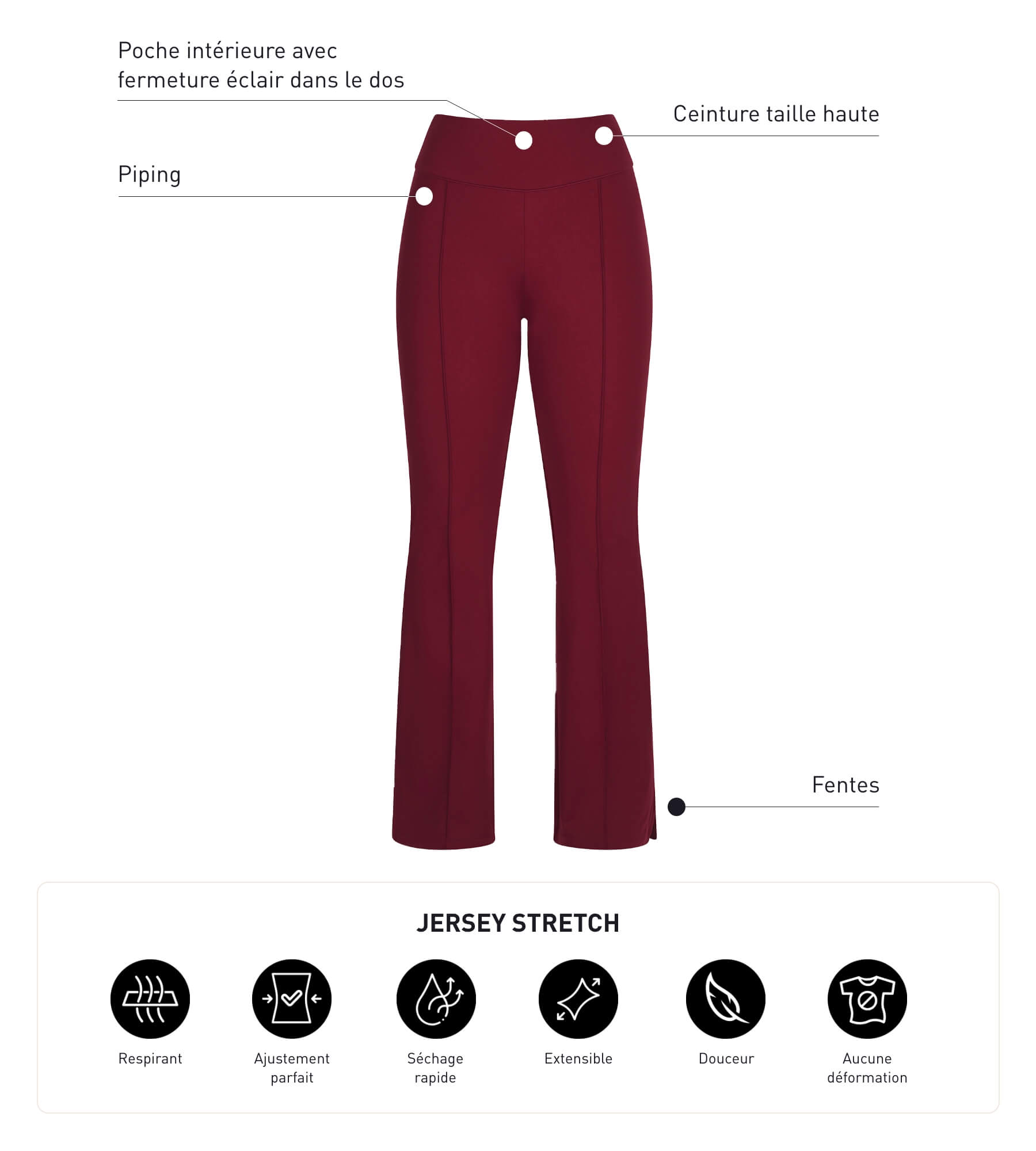 Pantalón deportivo acampanado de mujer en punto suave burdeos Dim Move