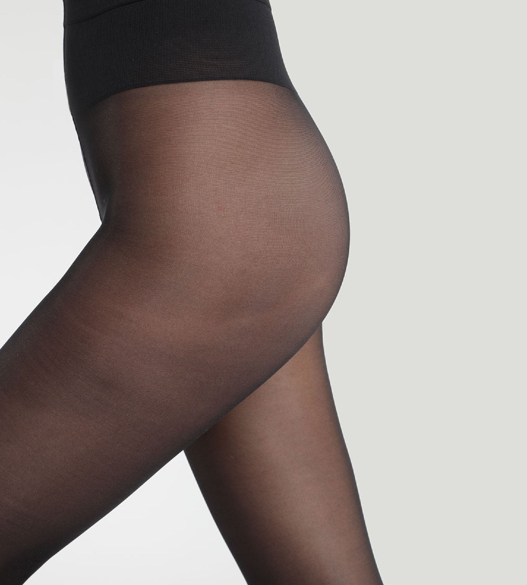 - Un panti negro semiopaco de 25 Den que moldea las piernas y las realza