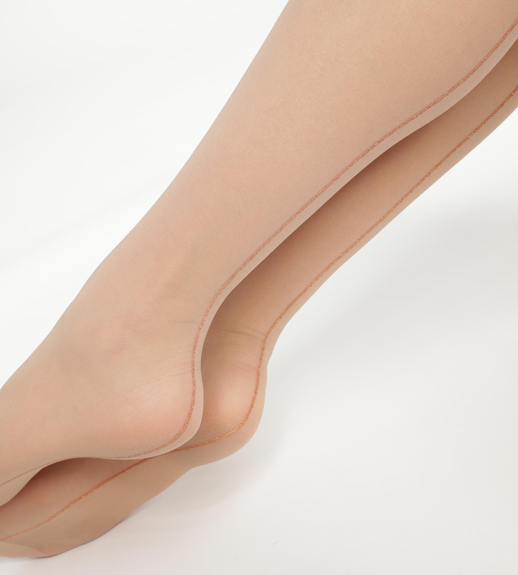 Aporta un plus de brillo y sofisticación a tus looks festivos de día con el panti transparente beis de lúrex dorado Dim Style. Están diseñadas para seguirte a todas partes con el mayor confort posible.