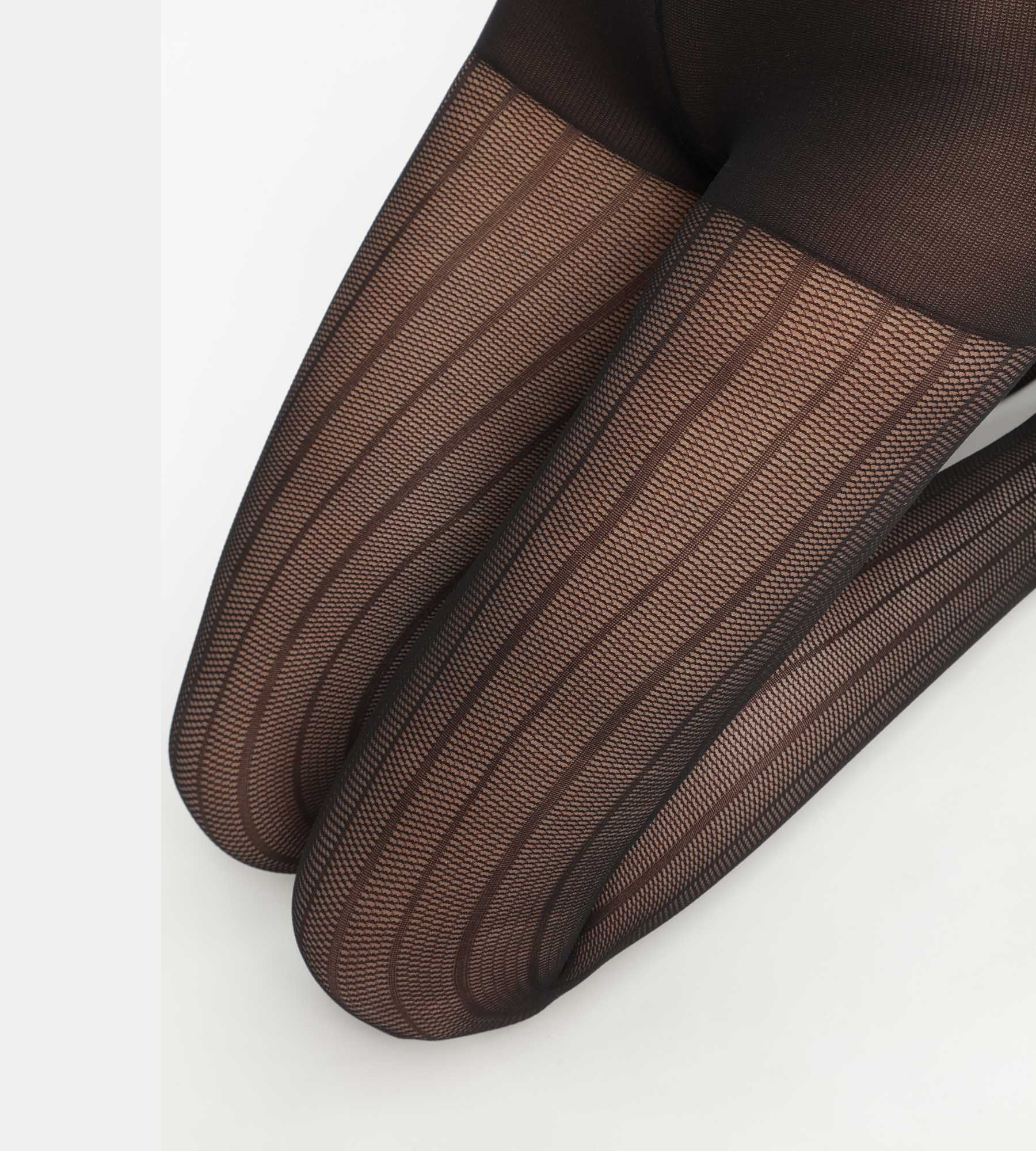 Presume de piernas estilosas con el panti transparente con estampado lineal negro Dim Style