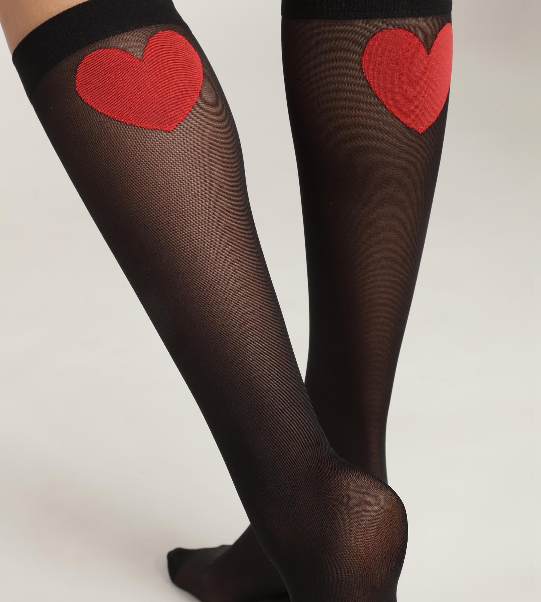 Añade un toque de romanticismo a tus conjuntos con las medias Dim Style en gasa negro con corazones rojos XL.