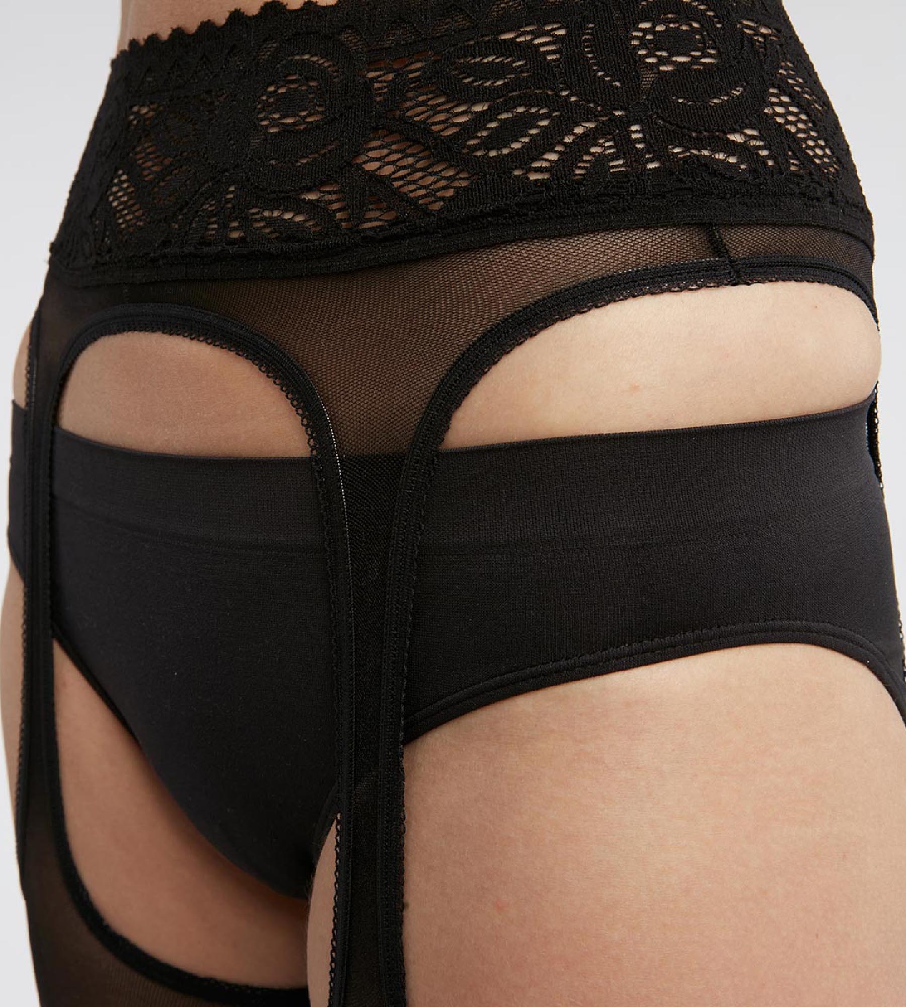 Pantis de mujer efecto liga en gasa y encaje Negro Dim Sexy
