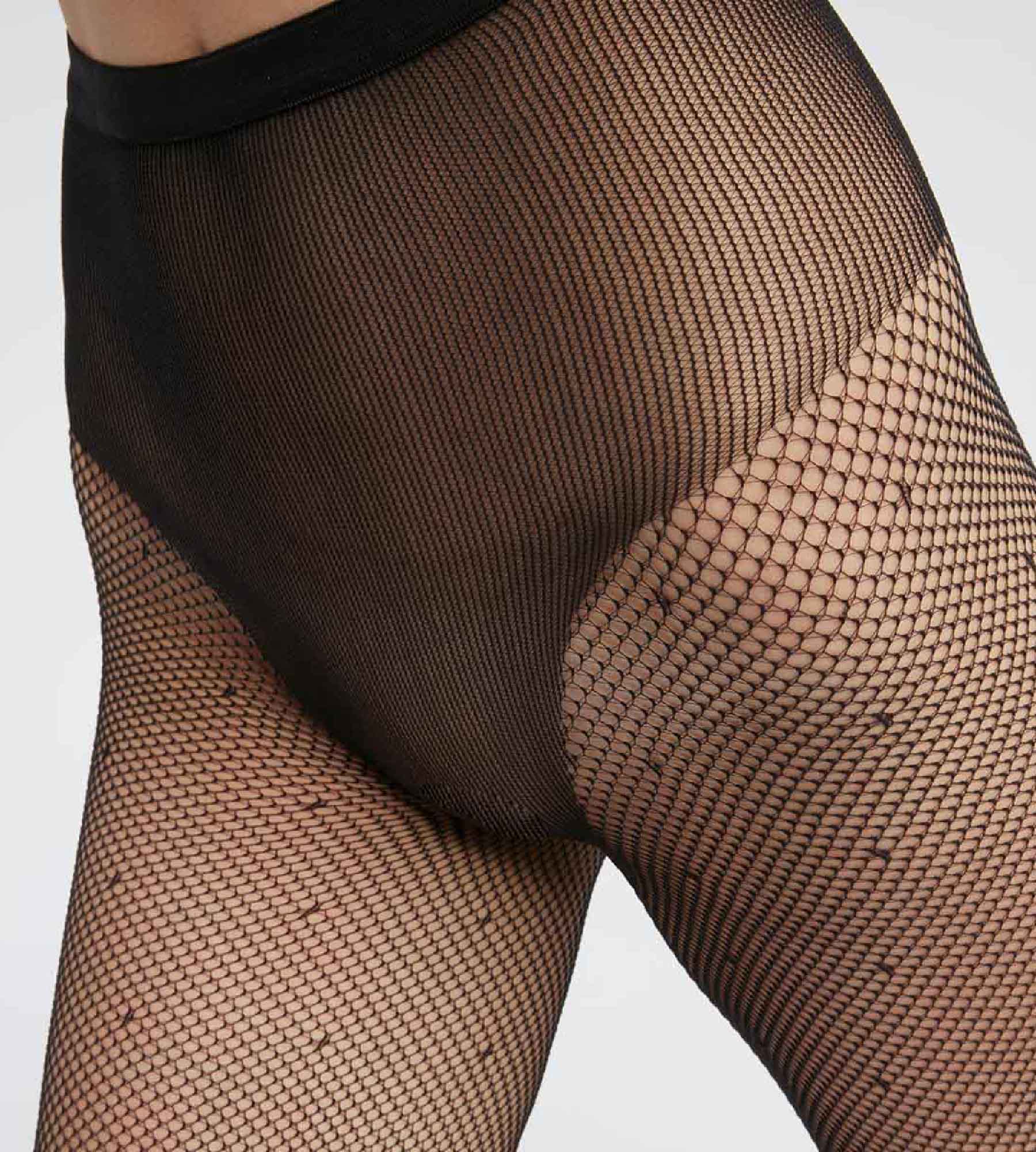 Déjate conquistar por nuestros pantis de rejilla Negro Dim Style con braga escotada y diseño efecto plumeti, tu nuevo aliado para seducir.