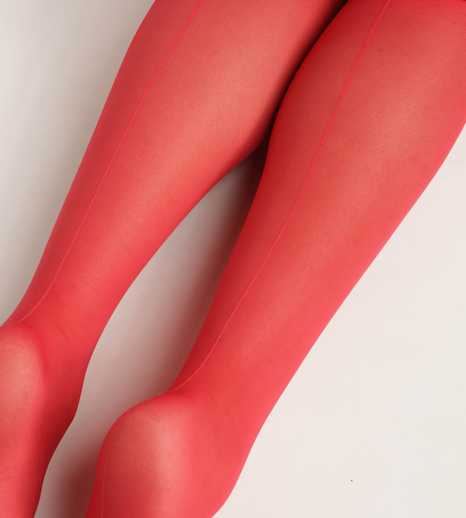 Con sus transparencias rojas y su línea vertical en contraste, estas Pantis para mujer Dim Style son un complemento carismático para cualquier conjunto. Este refinado detalle, que va desde la parte posterior de los muslos hasta los talones, alarga visualmente las piernas al tiempo que marca estilo. La cintura elástica garantiza un confort óptimo durante todo el día, sin oprimir ni marcar la cintura.