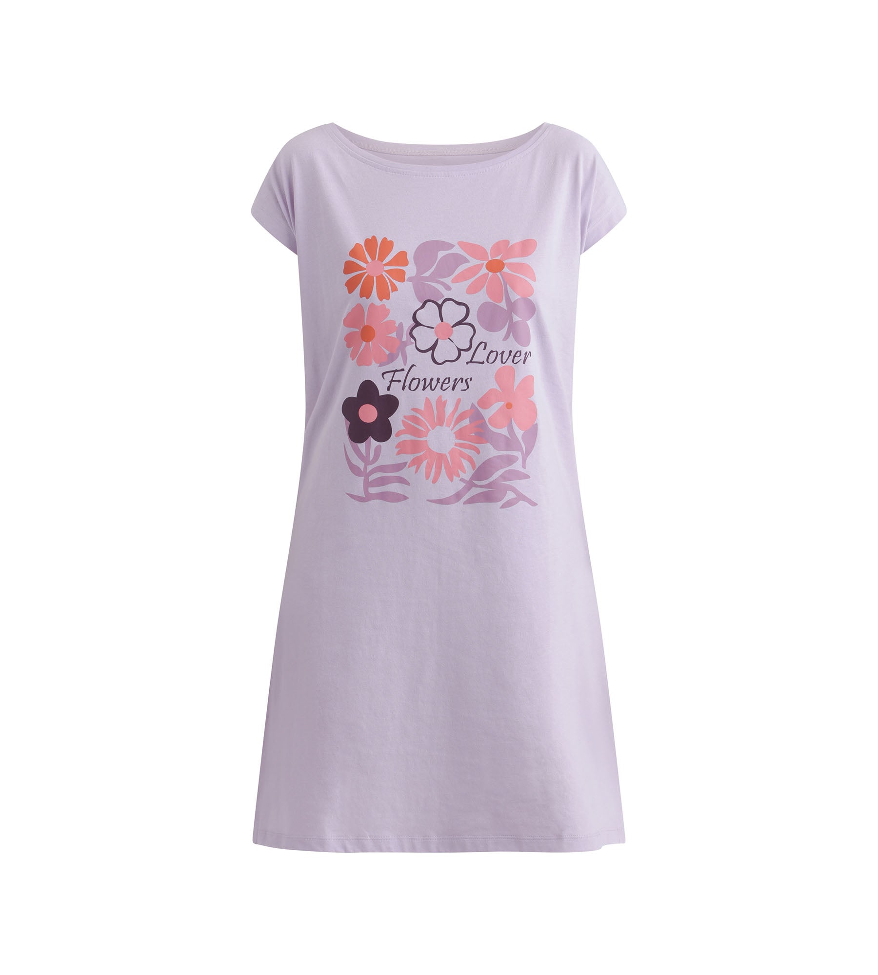 Sumérgete en la suavidad con el camisón para mujer Dim Nightwear en ligero jersey lila y un colorido estampado floral.