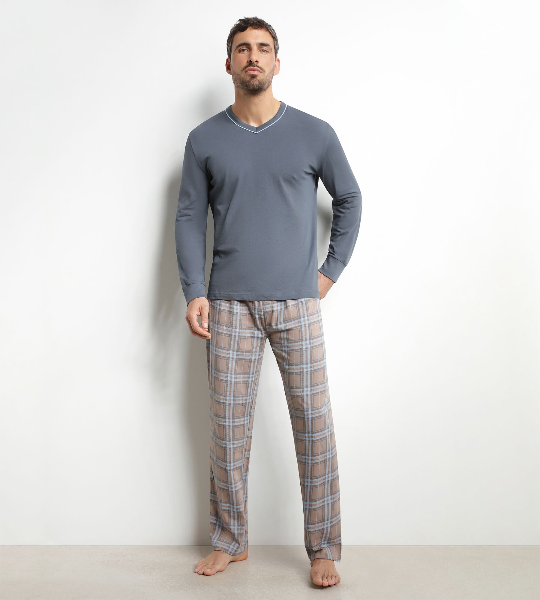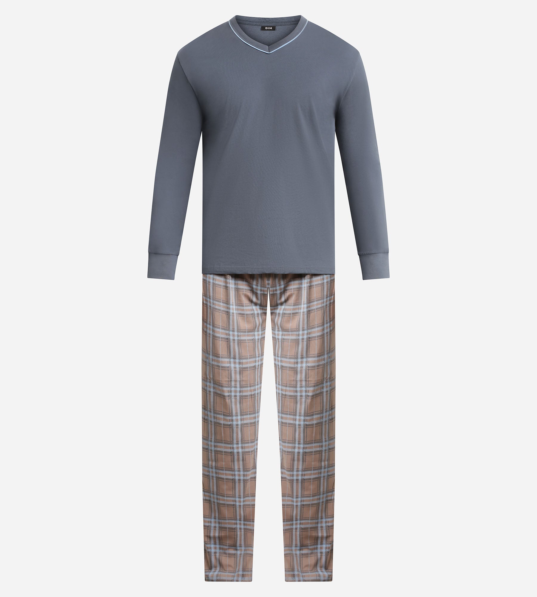 Apuesta por un look informal, estructurado y elegante con el pijama de hombre Dim Nightwear de jersey gris a cuadros.