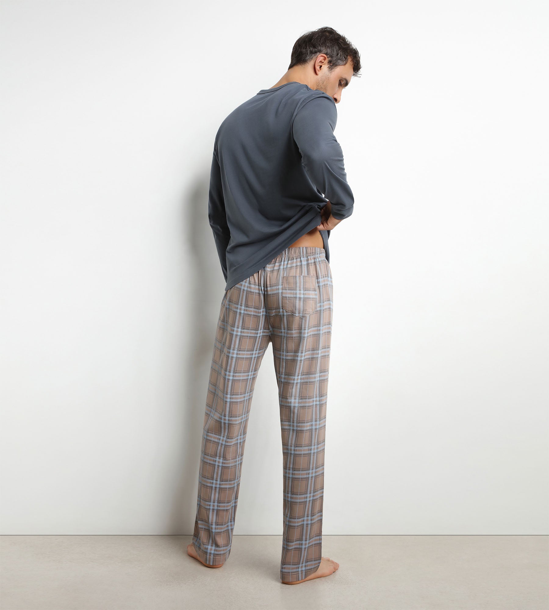 Pijama de hombre con pantalón de jersey gris a cuadros Dim Nightwear
