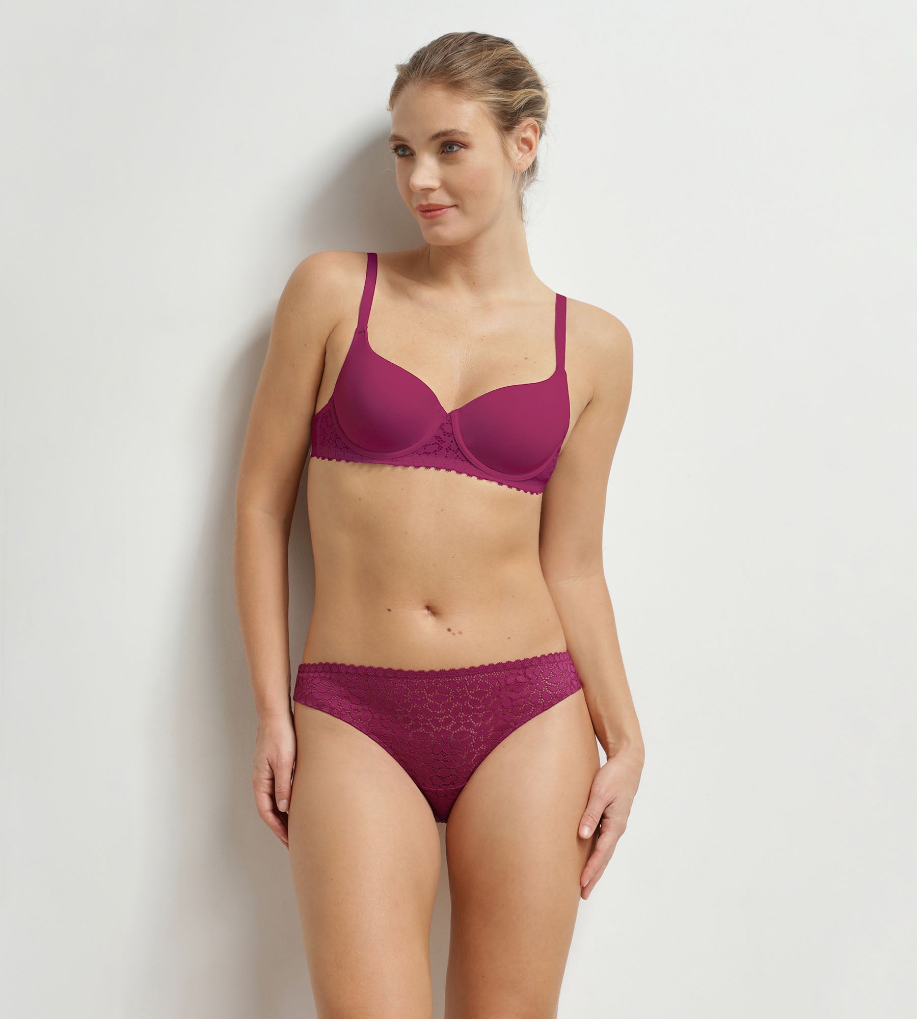 Combina el sujetador de encaje Dim Daily con las braguitas Daily Dentelle a juego para crear un conjunto vibrante.