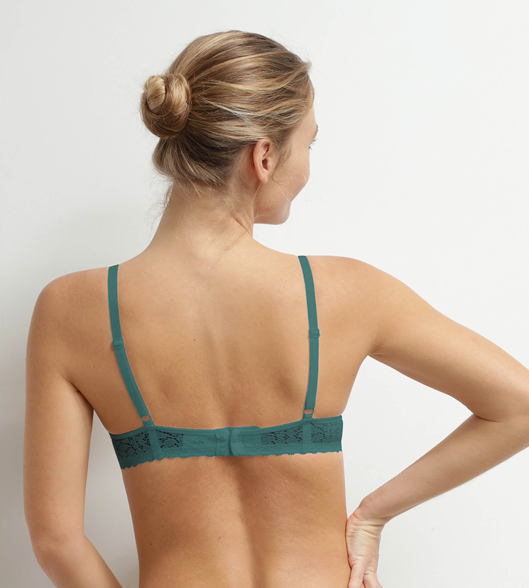 ¿Quieres darle un toque de alegría a tu cajón de la ropa interior? El sujetador balconette Daily Dentelle en verde esmeralda aporta la dosis justa de color y comodidad para el día a día.