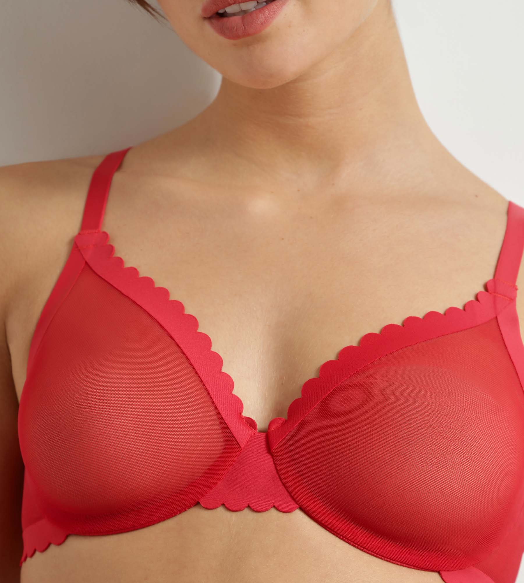 ¡Déjate seducir por el sujetador corbeille Dim Body Touch Cheeky de tul transparente Rouge Valentin, tu aliado para la sujeción y la feminidad!