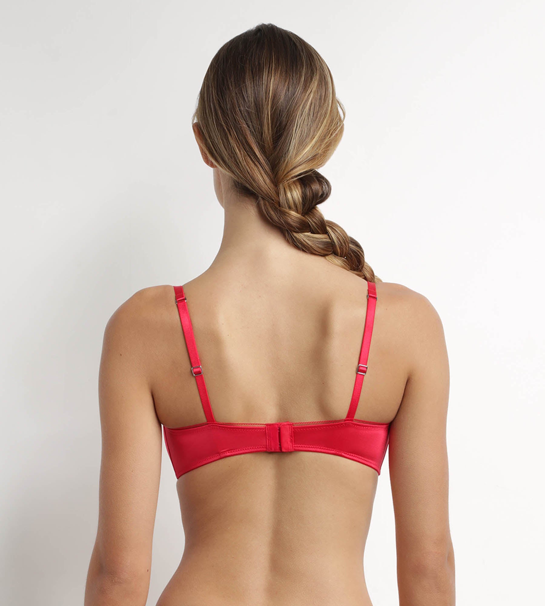 Sujetador bandeau con aros de microfibra satinada roja Dim Chéri