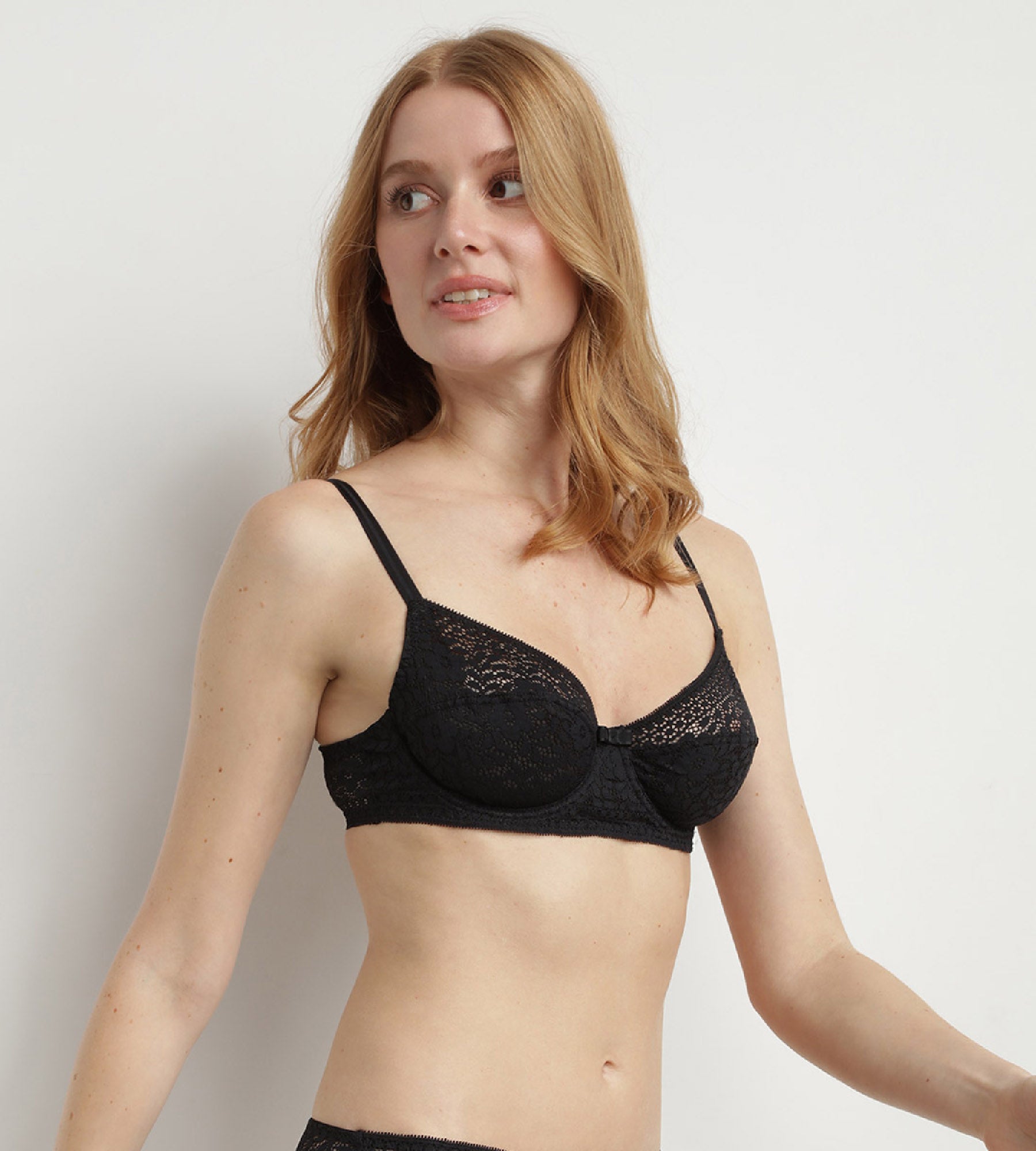 Sujetador con aros en encaje floral reciclado Negro Sublim