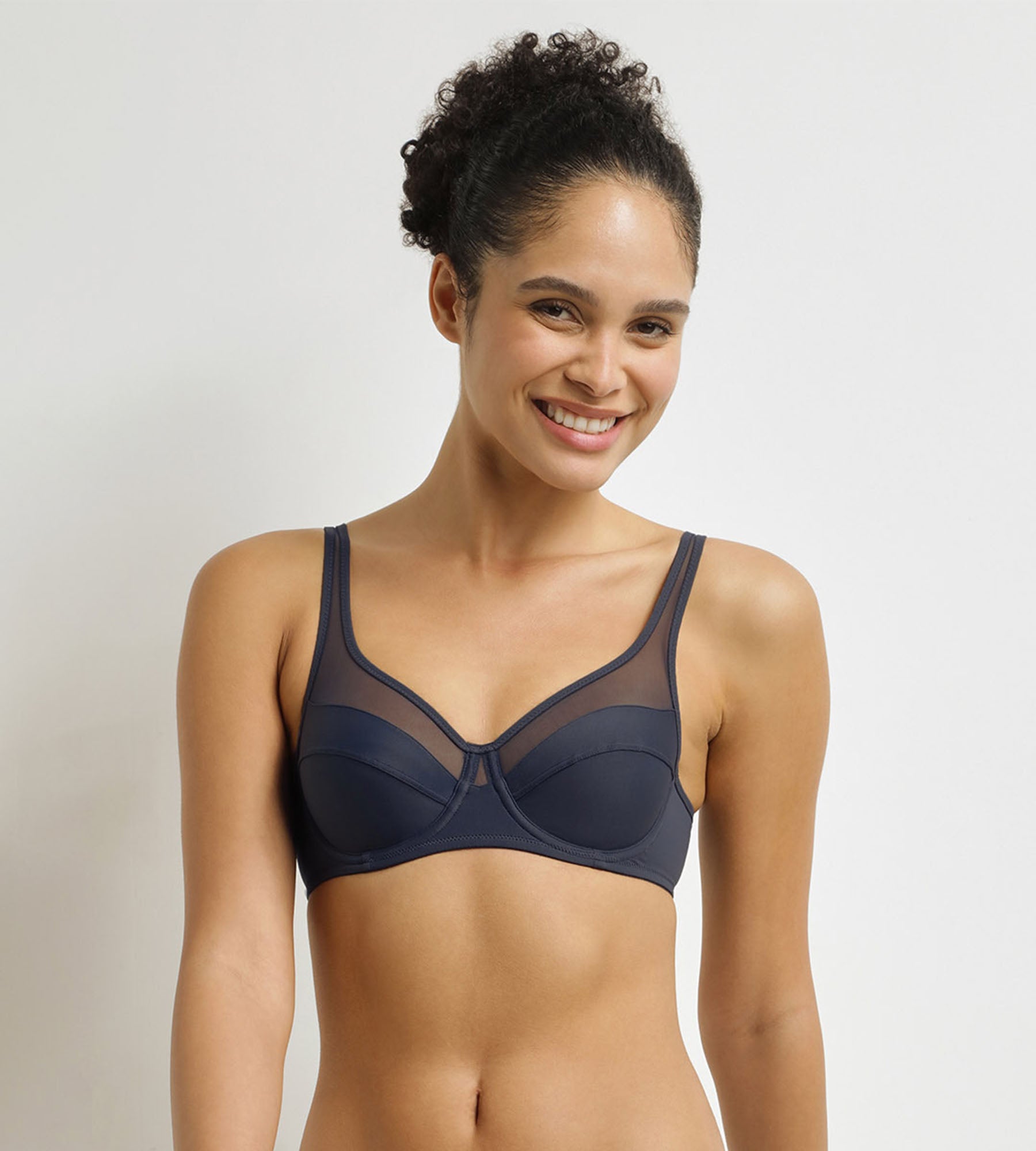 Combina sujeción, modernidad y ligereza con el sujetador Generous de microfibra y tul azul.