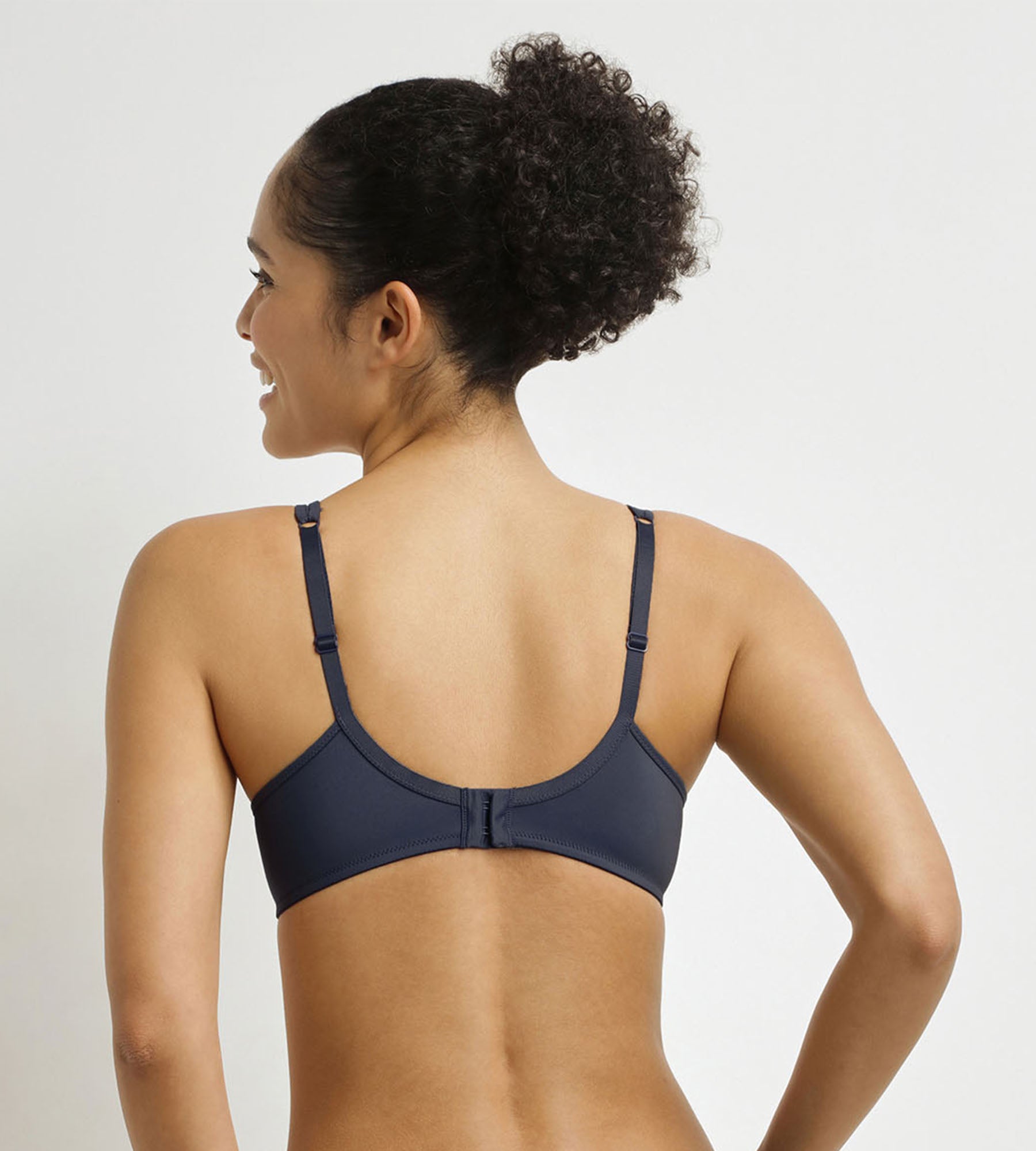 Especialmente indicado para pechos generosos, este sujetador con copas generosas Dim en microfibra azul formal sujeta y realza el busto con facilidad y carácter. Las copas parcialmente forradas con un acabado de tul translúcido estructuran y equilibran la silueta de forma natural. Con sus aros, su falda ancha y su espalda en U, este sujetador de talla grande no renuncia a la comodidad.