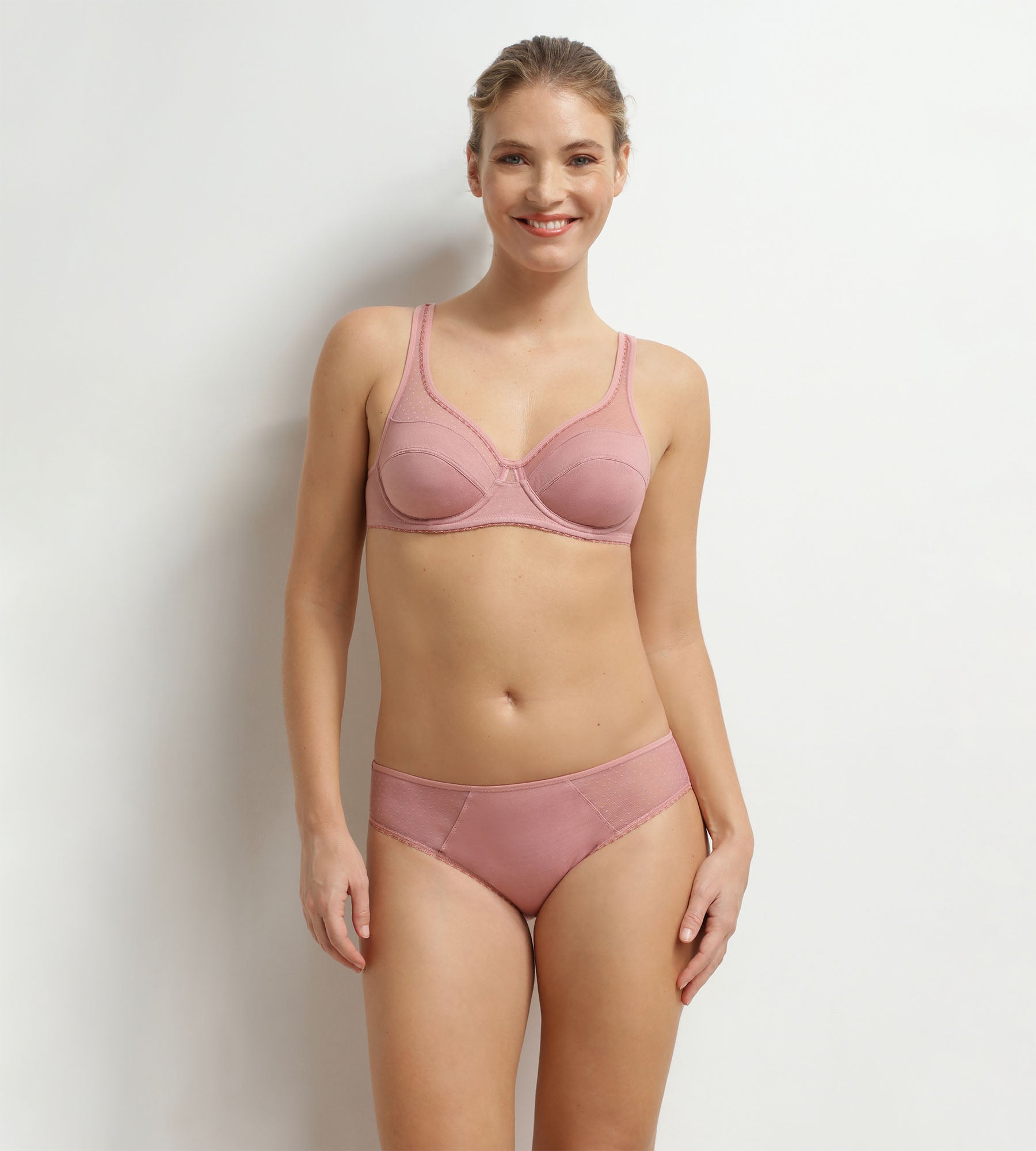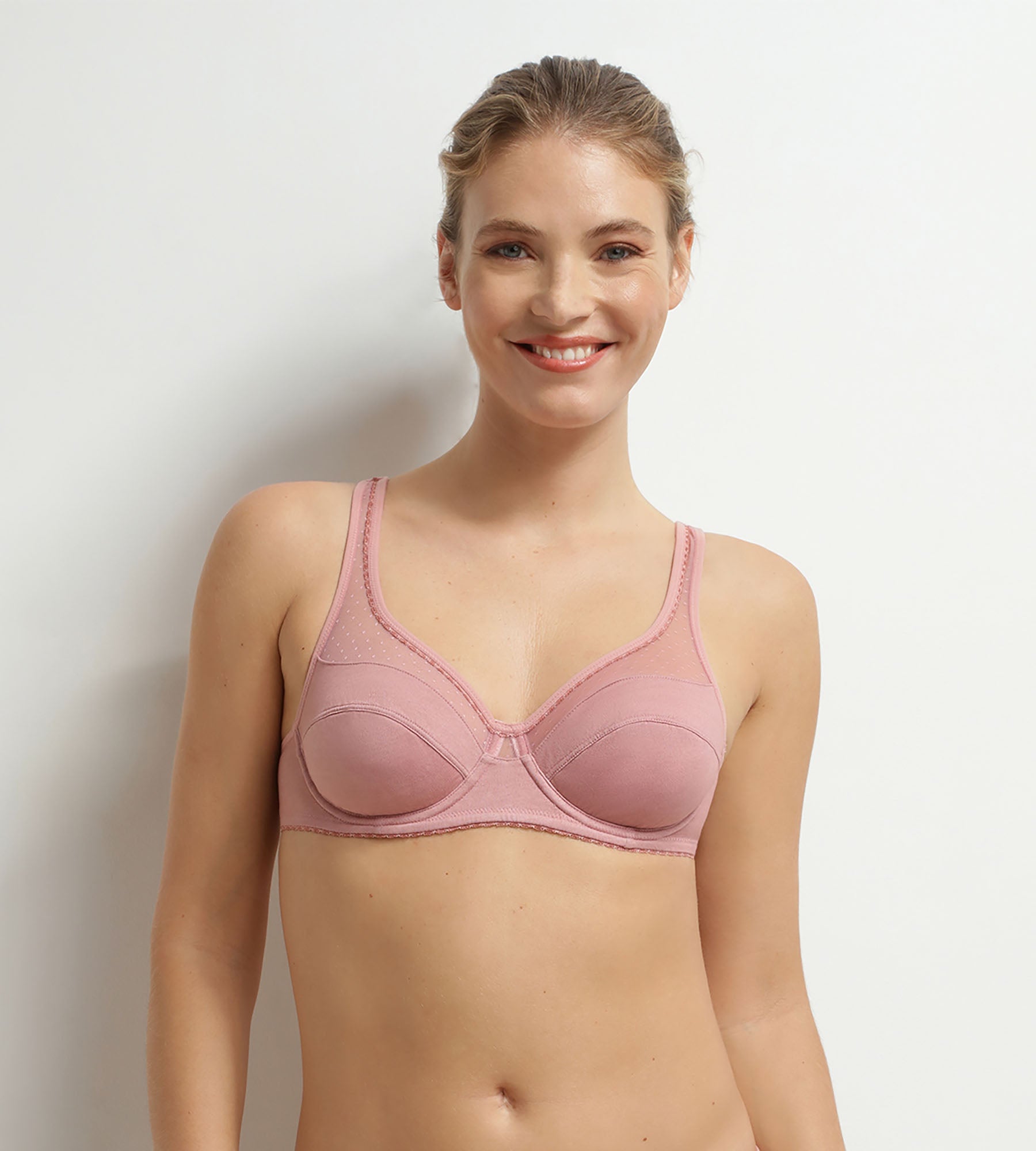 Déjate seducir por el discreto encanto y la suavidad del sujetador con aros Dim Generous Coton Bio en rosa ceniza.