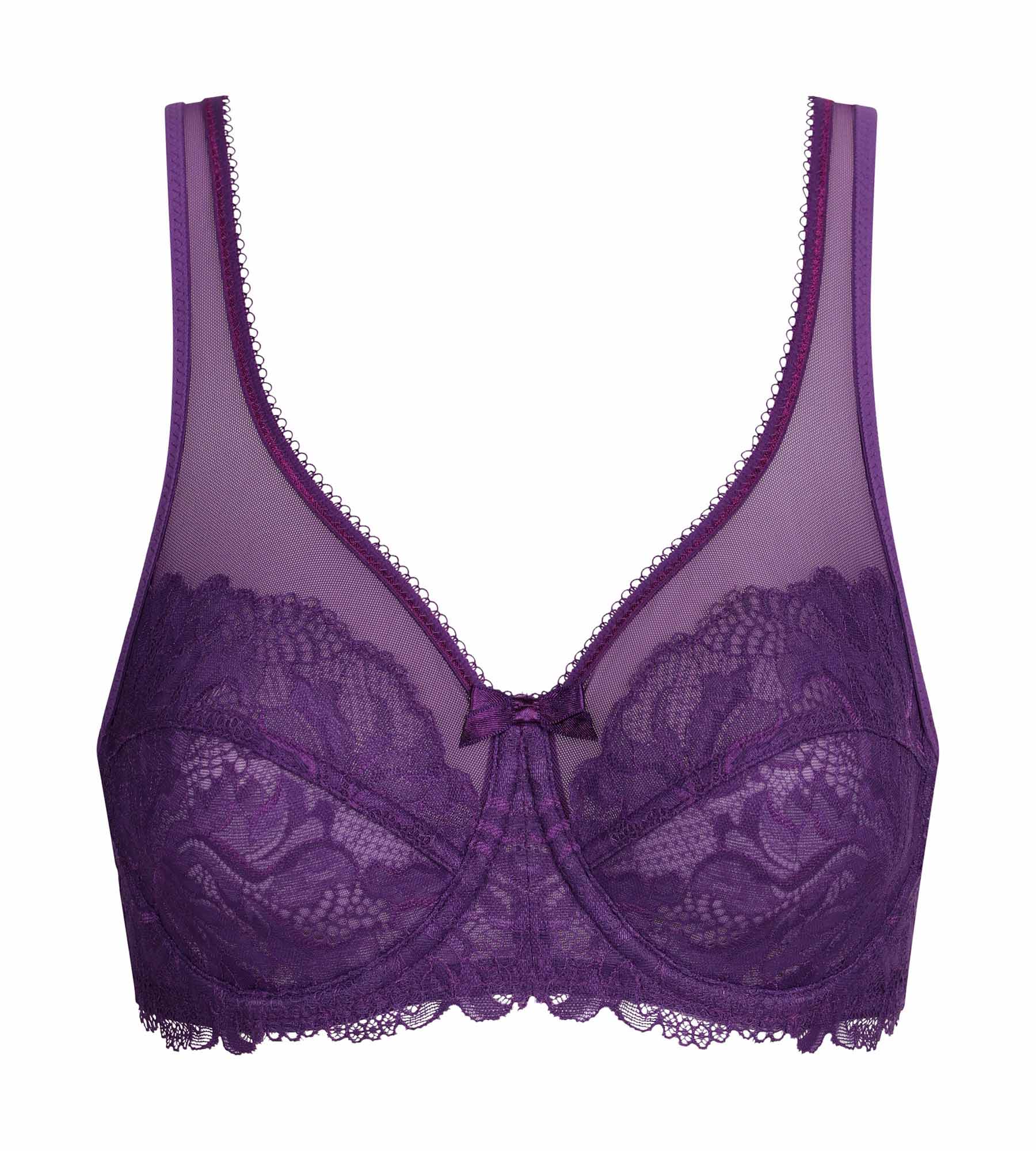 Aporta un toque místico a tu lencería con el sujetador con aros Dim Generous Essentiel de encaje violeta vivo, que combina sujeción y sensualidad.