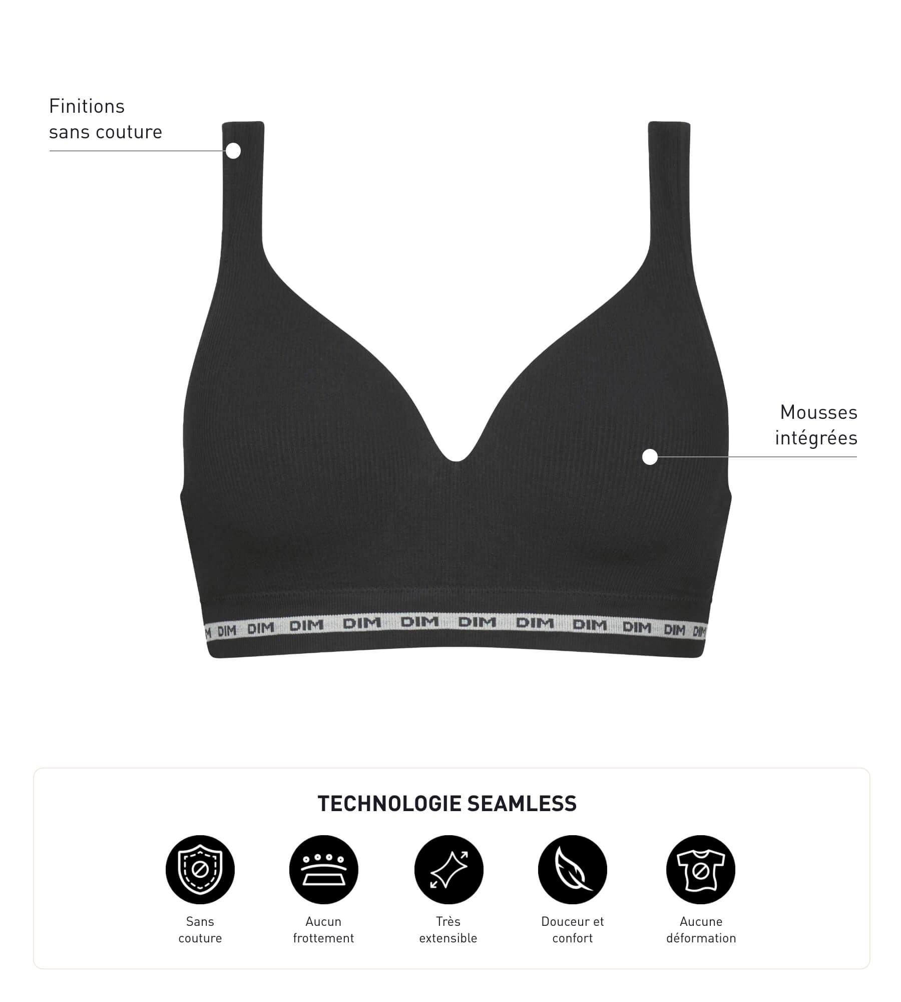 Sujetador de canalé negro sin aros ni costuras Dim Icon Seamless