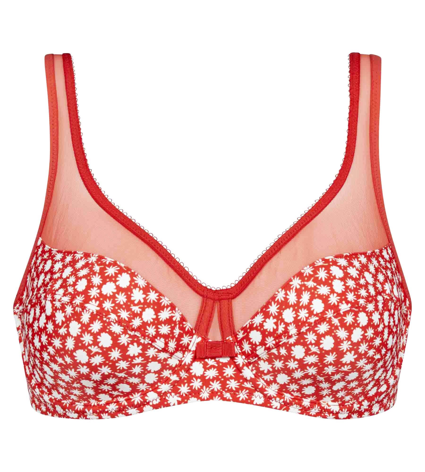 ¡Combina comodidad y feminidad con un diseño alegre como el del sujetador de gran capacidad con aros Rojo con flores blancas Generous de Dim!