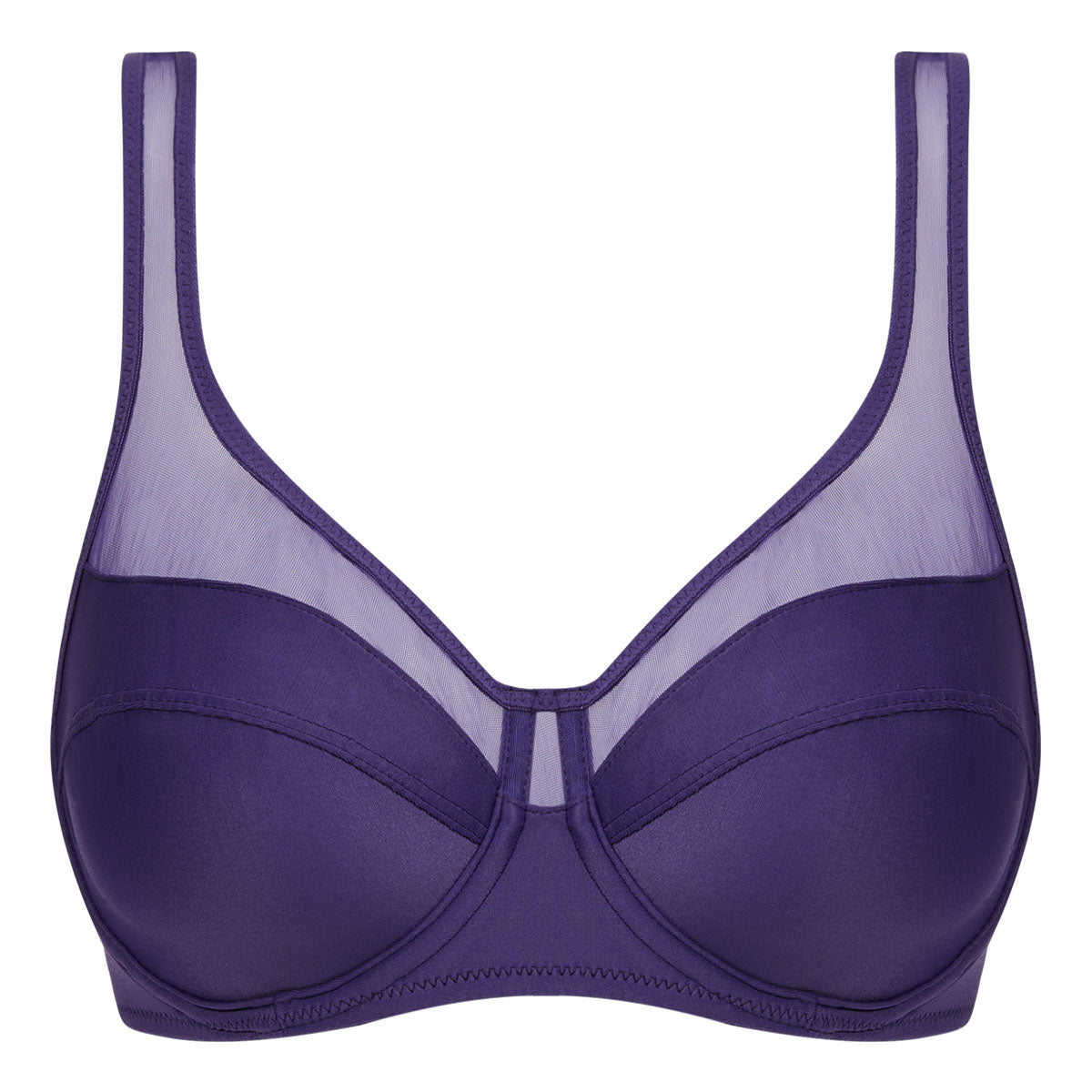 Diseñadas para resaltar los pechos voluminosos con sencillez y comodidad, las prendas de Lencería & sujetadores Generous de gran capacidad son tus básicos preferidos! Las copas semitransparentes moldean tus pechos con delicadeza, la anchura de la parte inferior y la espalda en forma de U cuidan de tu postura, y la microfibra violeta le da el toque de sensualidad.
