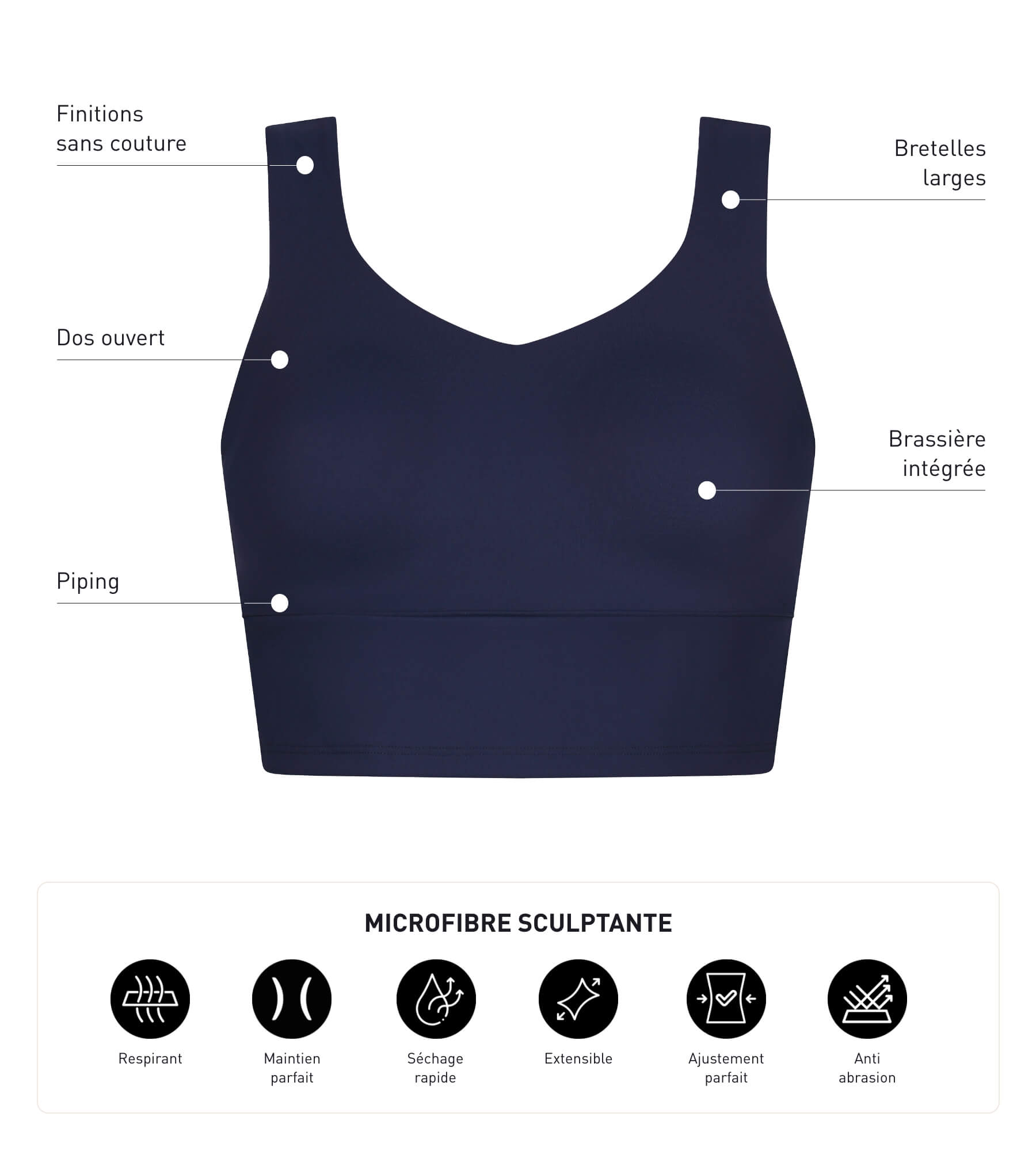 Ideal durante las sesiones de entrenamiento o los días muy activos, este sujetador deportivo Dim Move apuesta por la tecnicidad sin renunciar al estilo. Su tejido de alto rendimiento evacua la humedad, limita las rozaduras y se mantiene cómodo, incluso durante el ejercicio. El puño interior garantiza un ajuste fluido, mientras que el corte largo estructura maravillosamente la silueta. Ideal para fitness, yoga o sesiones más dinámicas, se está convirtiendo rápidamente en una parte esencial de tu armario deportivo.