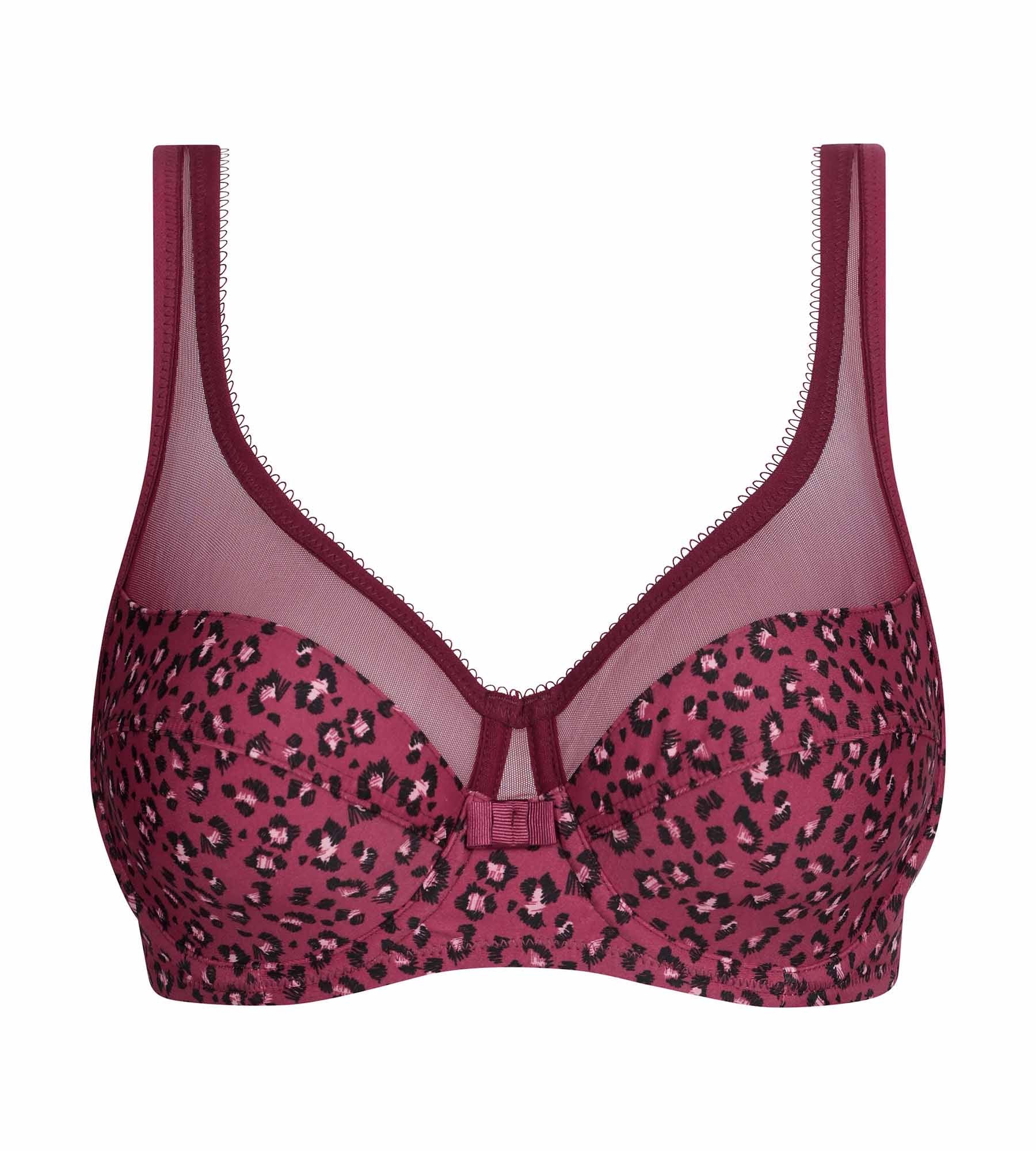 Sujetador envolvente de microfibra y tul rojo marrón Generous