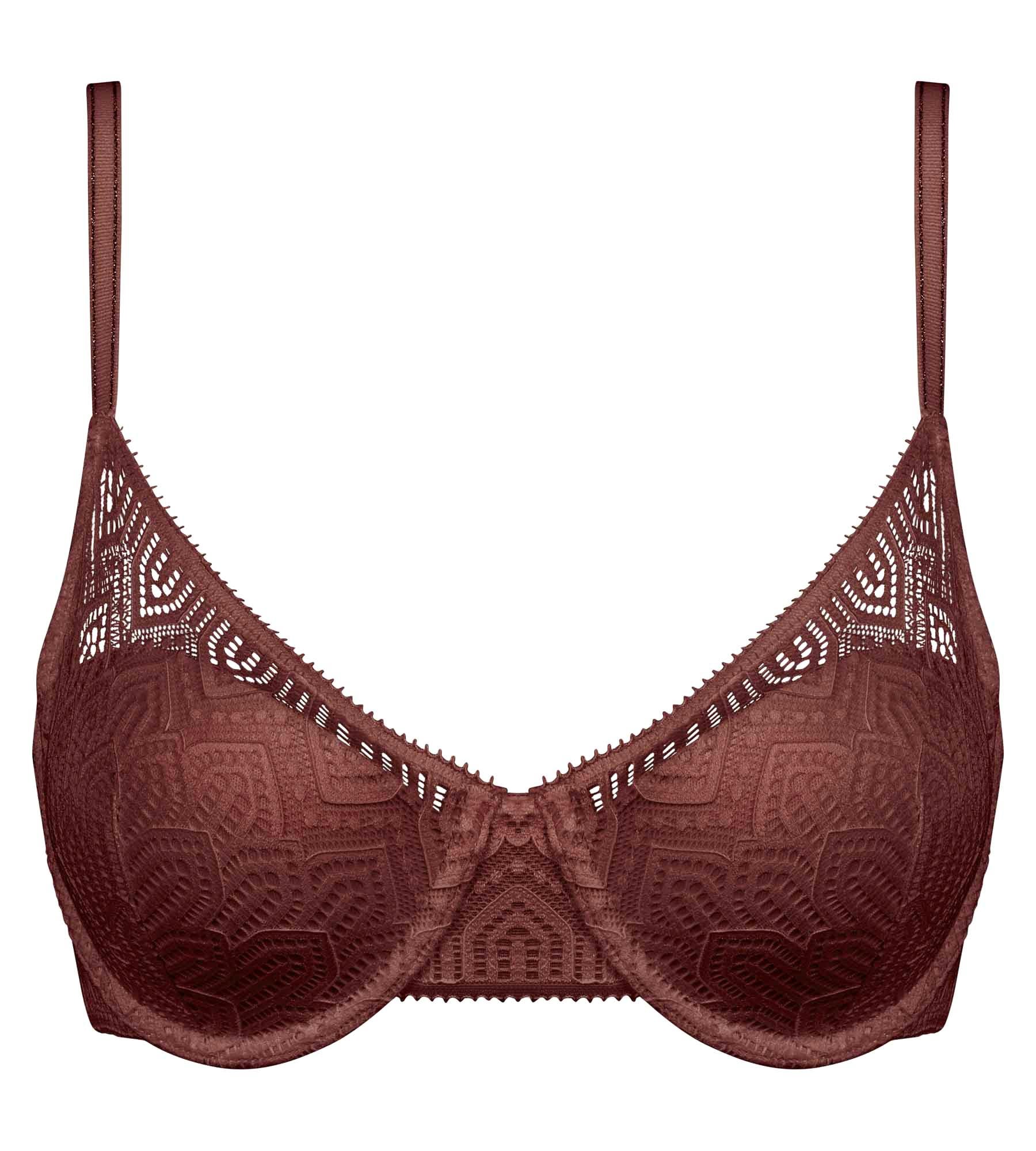 Elige colores favorecedores que reflejen tu personalidad: hazte con el sujetador preformado con aros de encaje gráfico Cacao Mod de Dim
