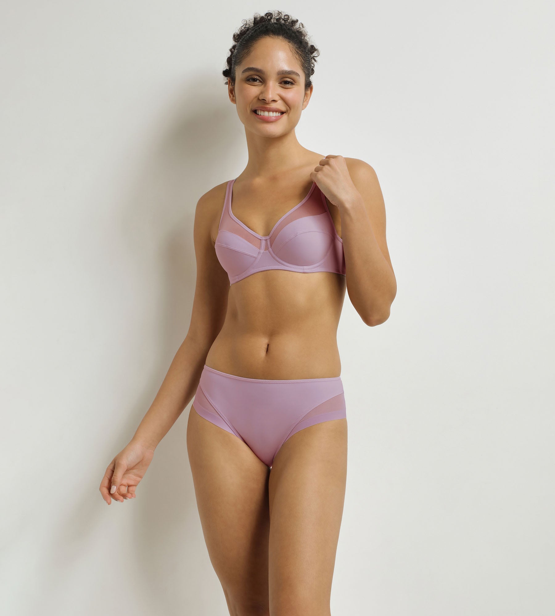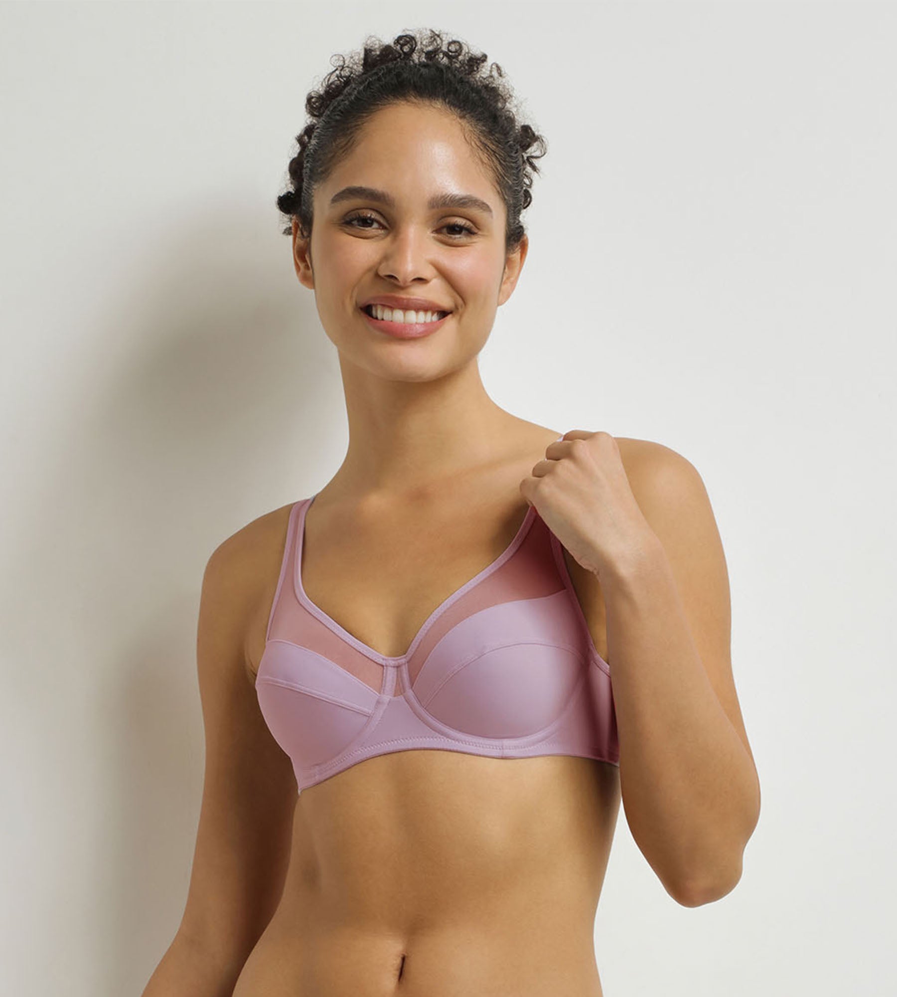 Combina sujeción, comodidad y succión con el sujetador push-up con aros de microfibra y tul Generous Violet.