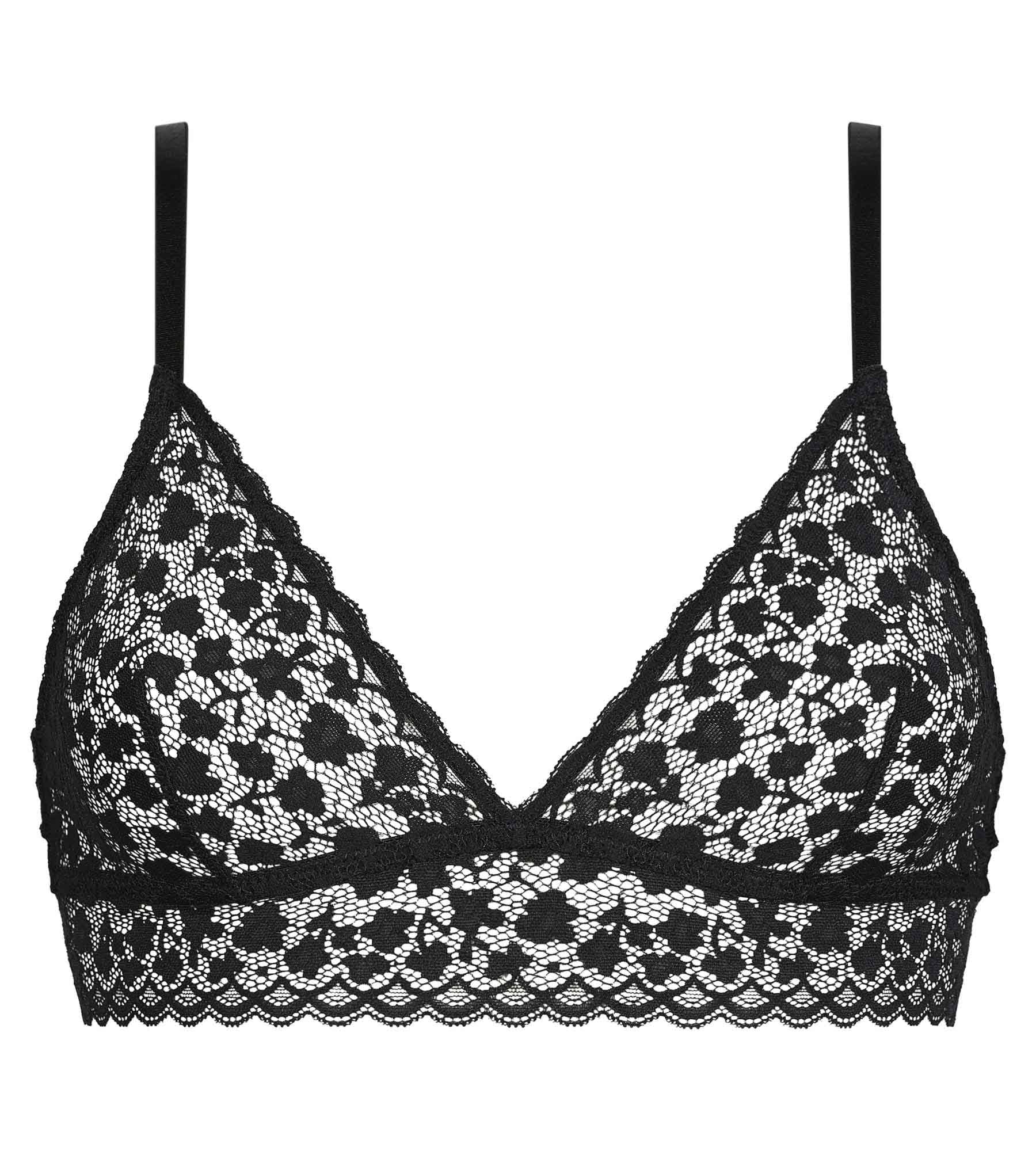 Recoge tu pecho con sensualidad y estilo gracias al sujetador triangular de encaje floral negro Daisy Lace de Dim