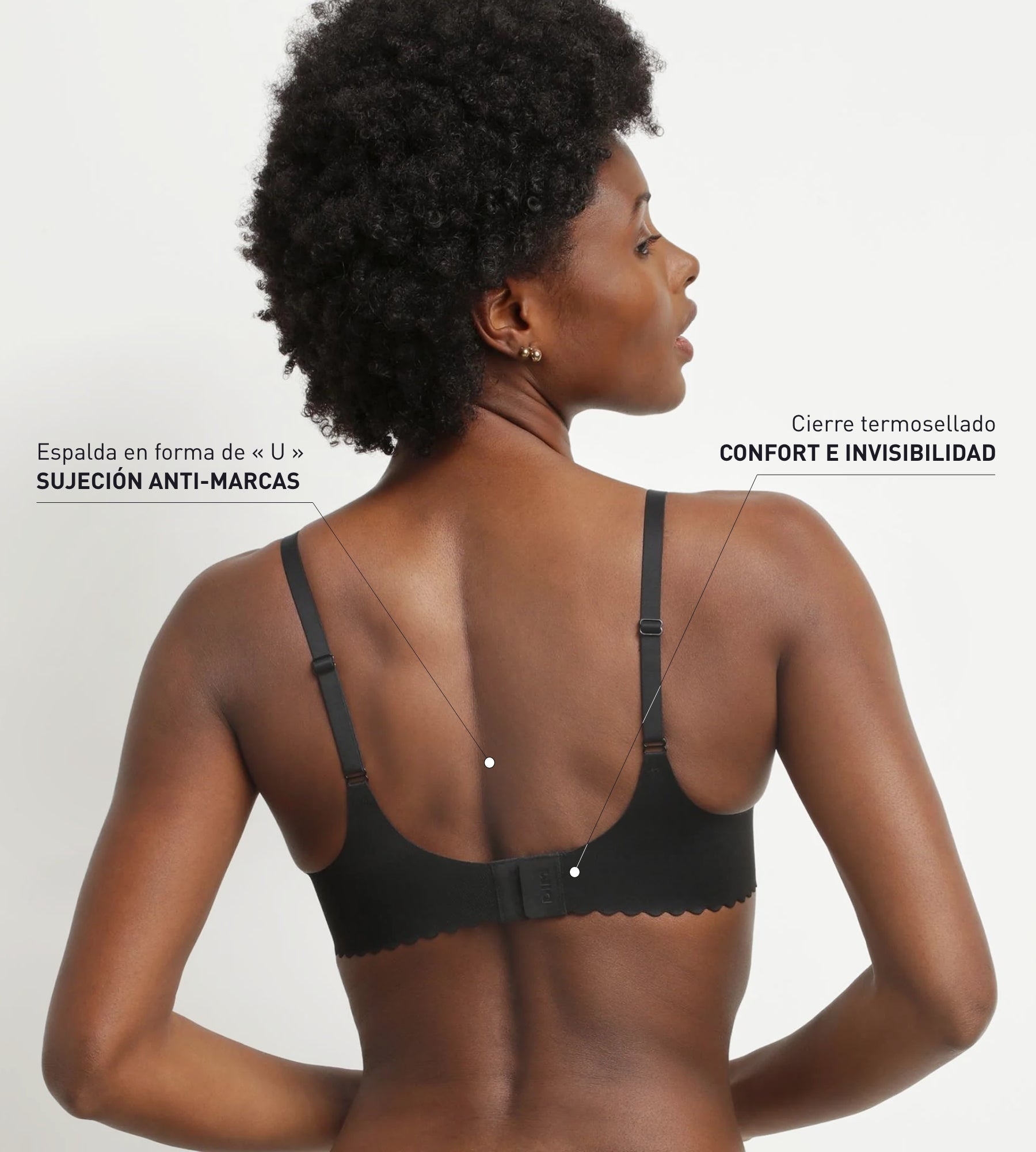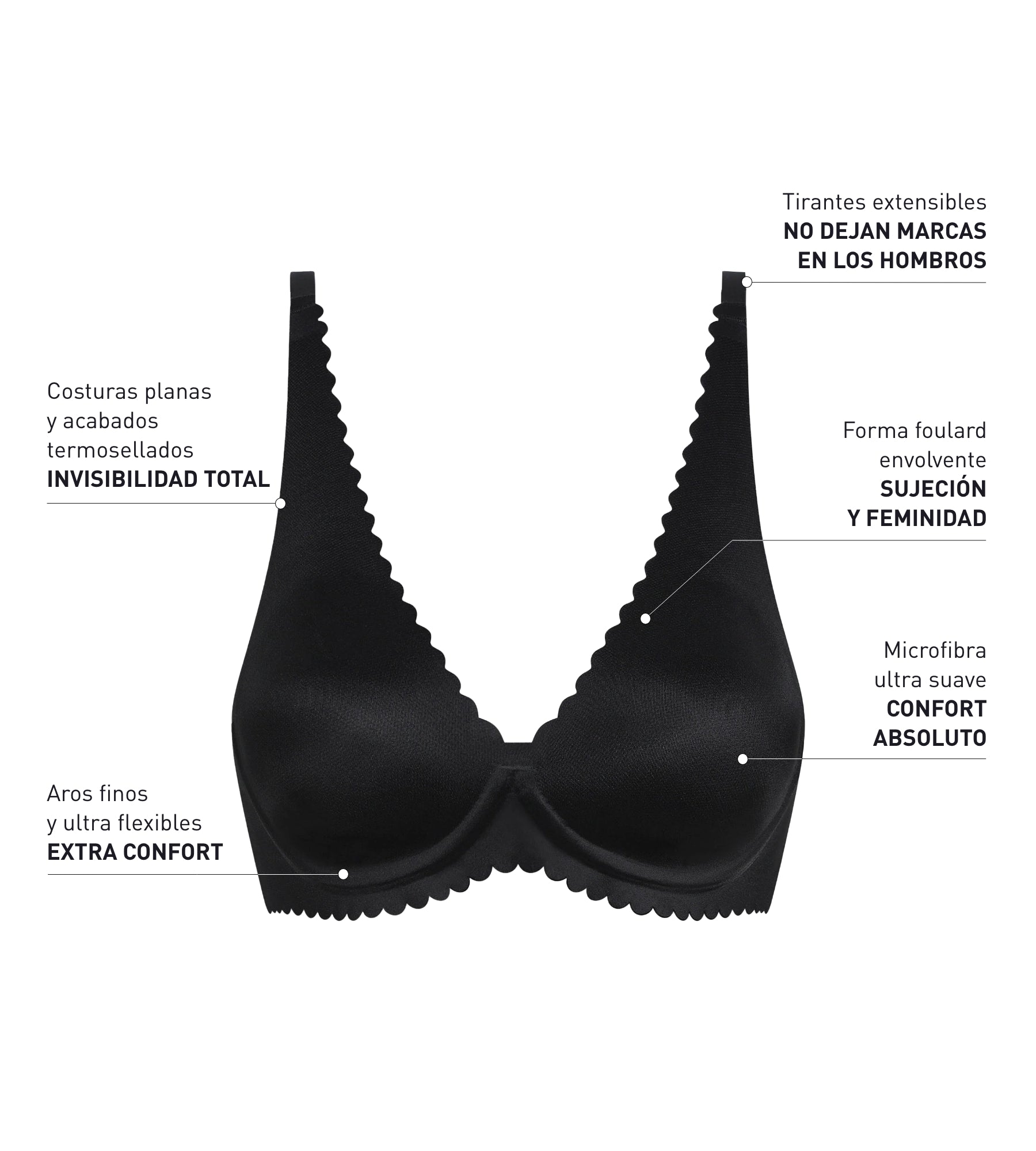 Este sujetador es apto para todos los tamaños de pechos. Combínalo con la braguita festoneada negra a juego de la línea Body Touch. ¡Muy chic!