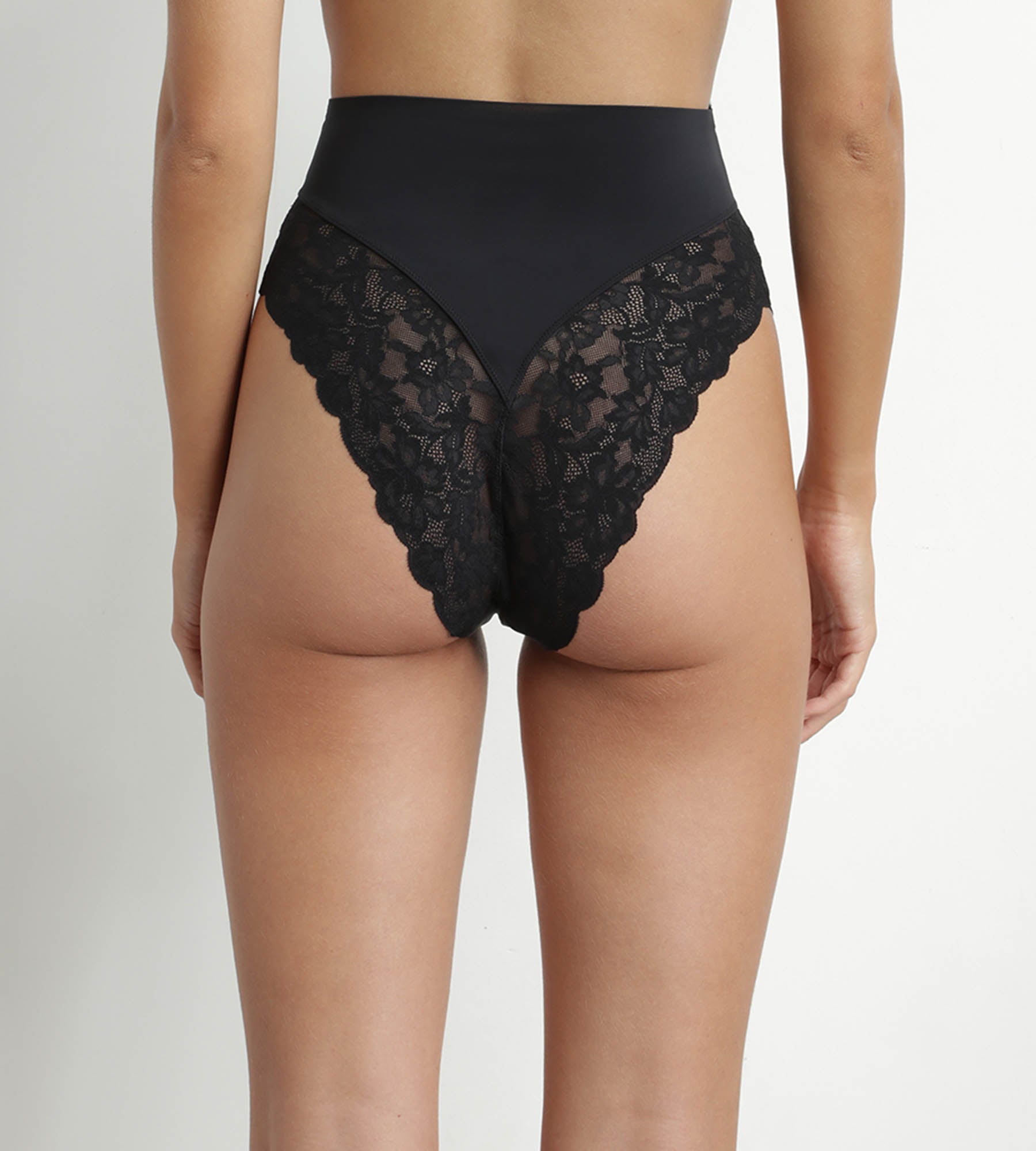 Tanga moldeador talle alto microfibra y encaje negro Dim Silhouette Elegance