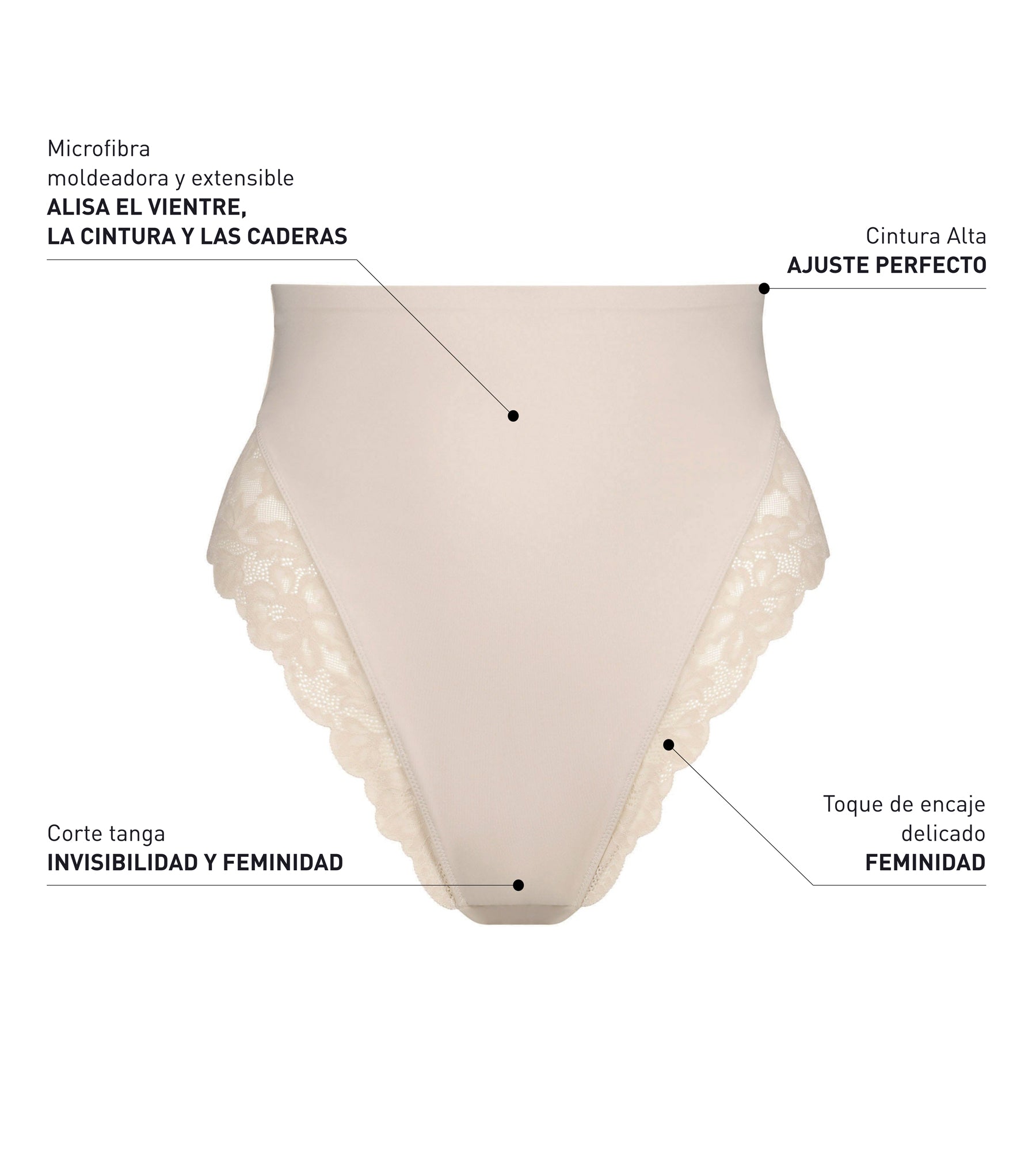 Tanga moldeador talle alto microfibra y encaje nude Dim Silhouette Elegance
