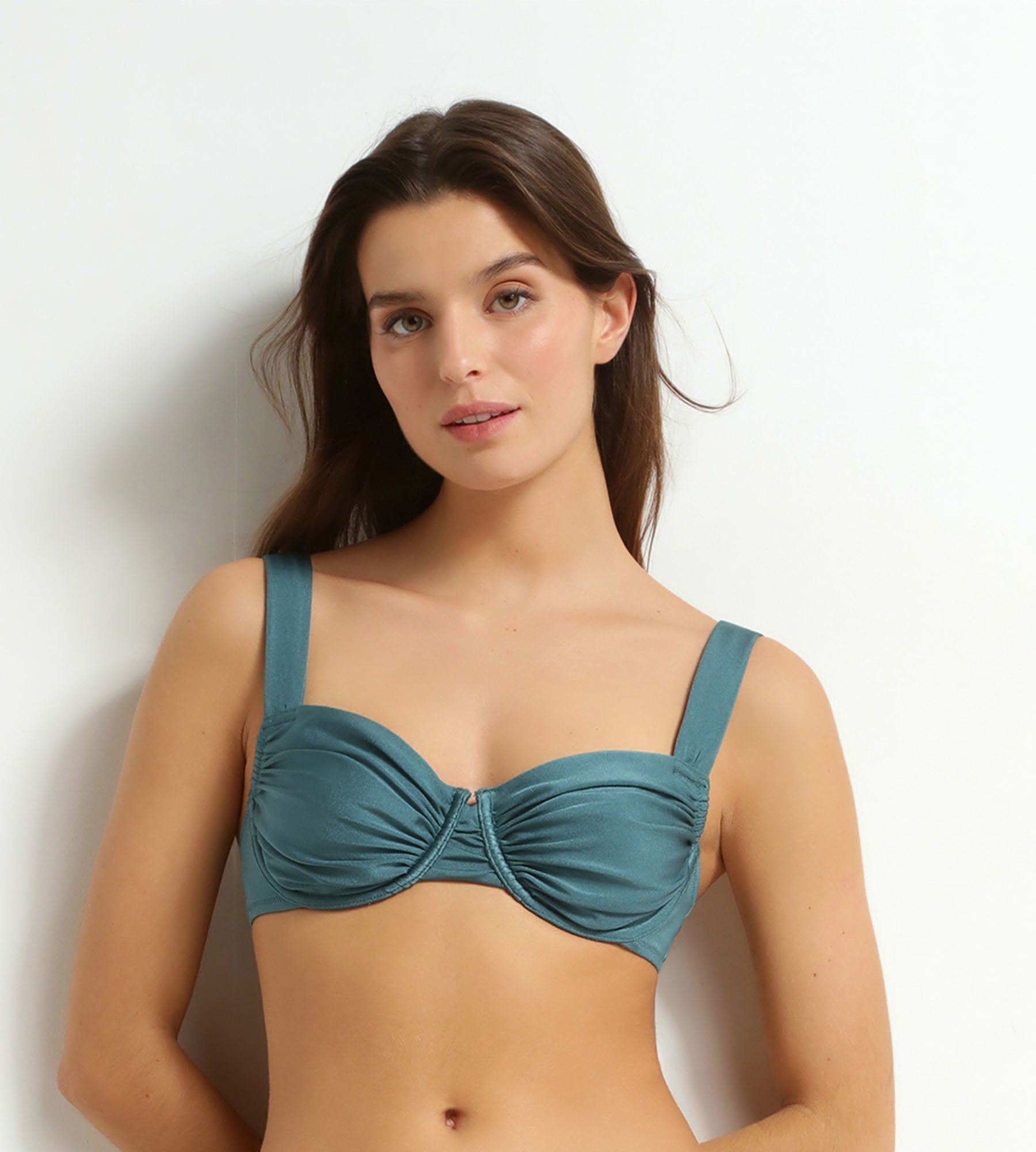 Déjate seducir por este bañador de mujer de Dim Swimwear con un sutil efecto satinado, que realza el bronceado con elegancia. Gracias a su diseño de sujetador balconette, la sujeción es precisa y el pecho queda perfectamente realzado. El color verde esmeralda, intenso y profundo, moderniza este top de bañador para mujer sin dejar de ser atemporal. Las varillas proporcionan una base fiable, ideal para un día completo al sol. Una prenda moderna y cómoda de llevar, que acompaña fácilmente cada momento del verano.