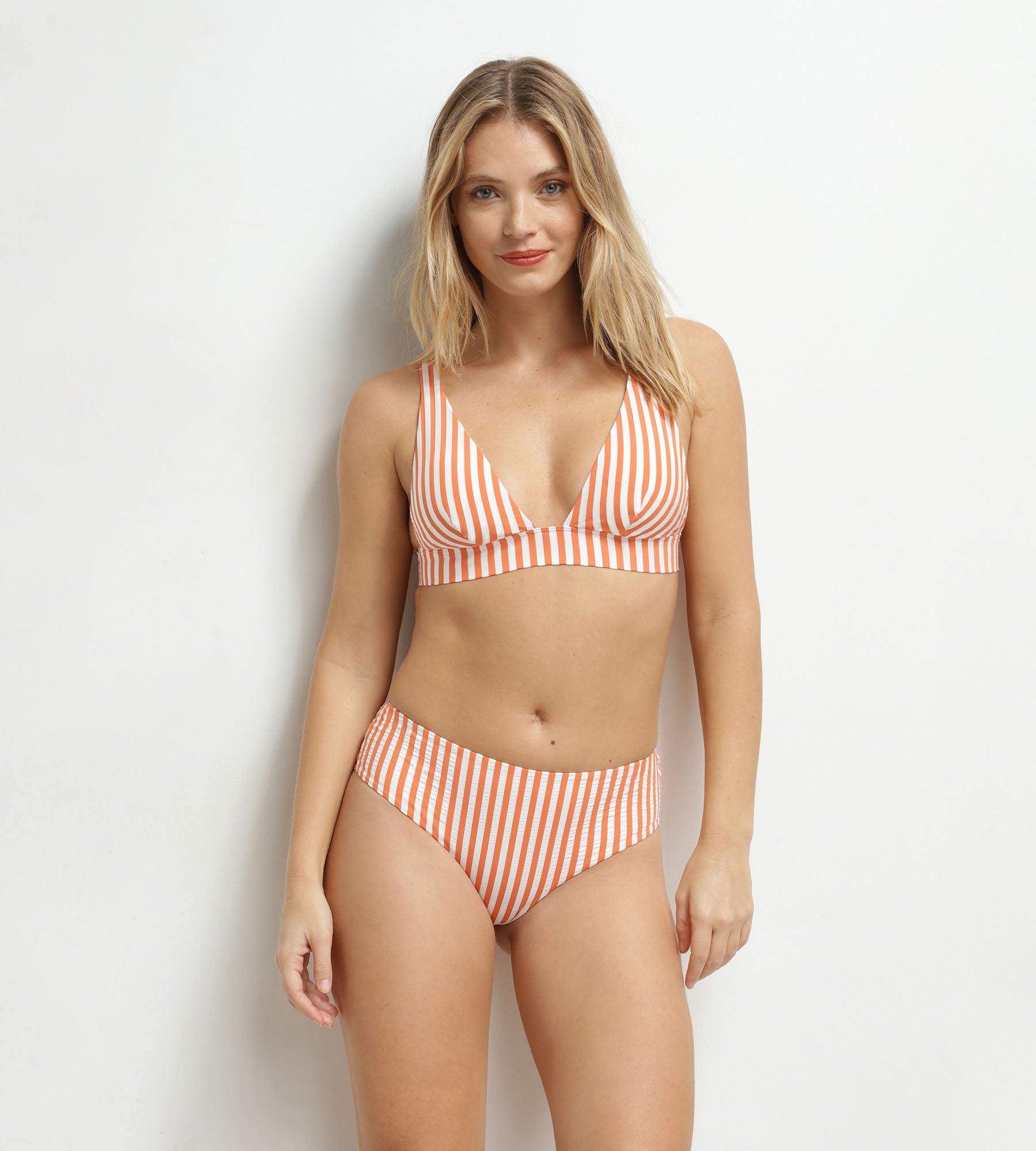 Top de bañador triangular de mujer a rayas Écru Orange Dim Swimwear