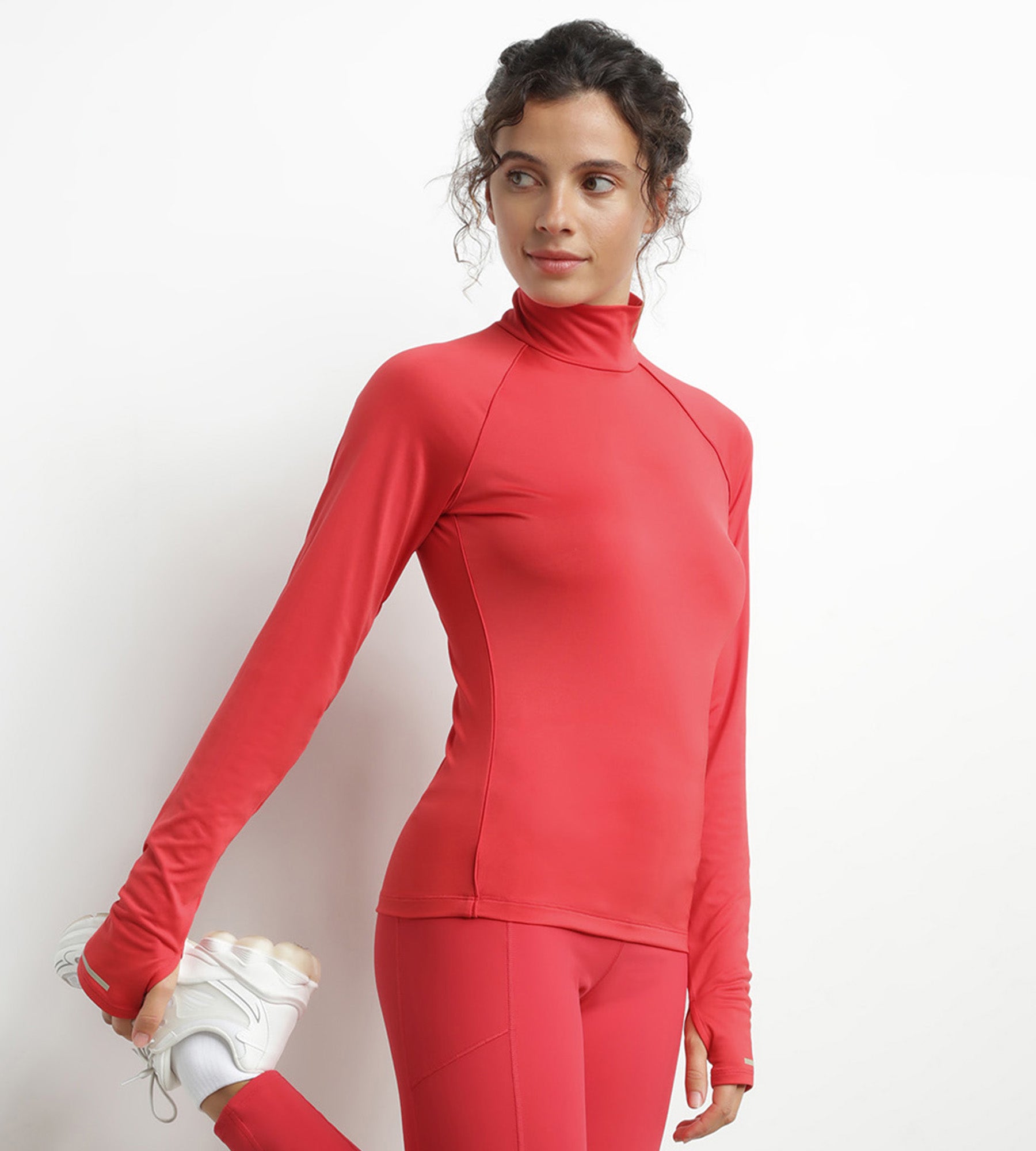 Top deportivo de mujer Dim Move rojo con cuello alto en microfibra