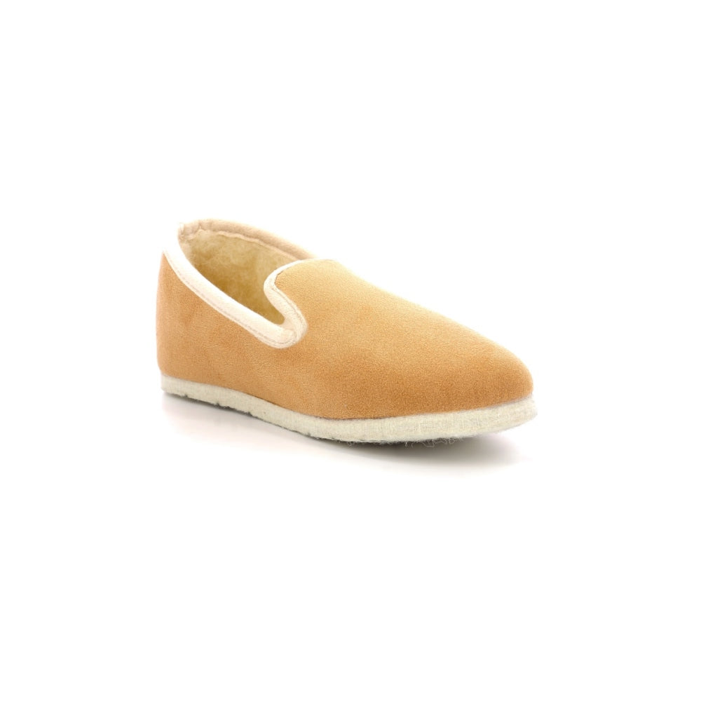 ¡Te enamorarás de esta zapatilla de casa ultra suave en color beige / blanco roto de tela con suela de goma fabricada en España!